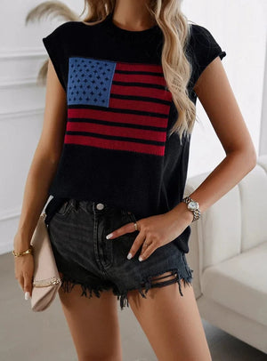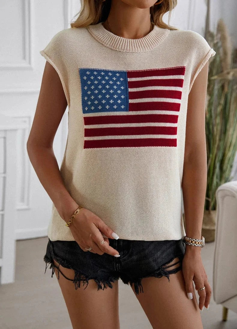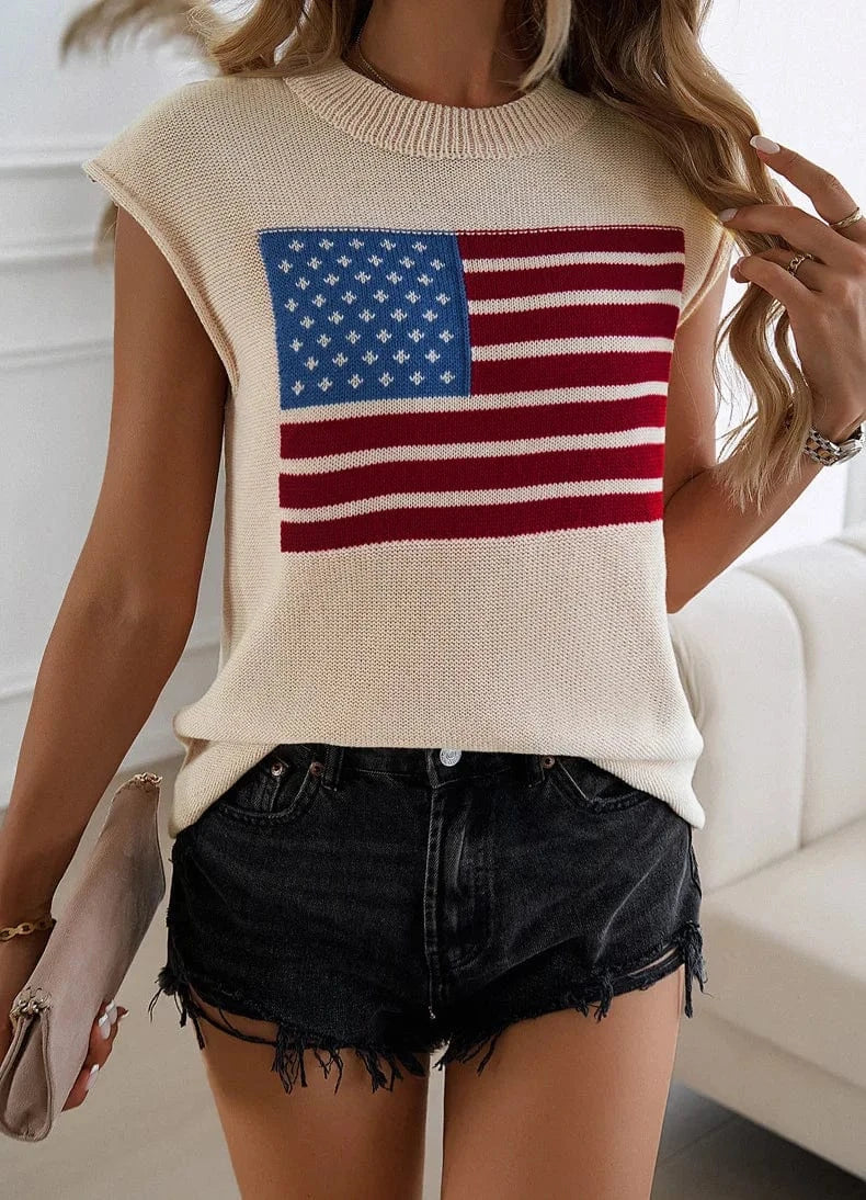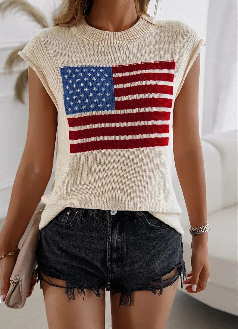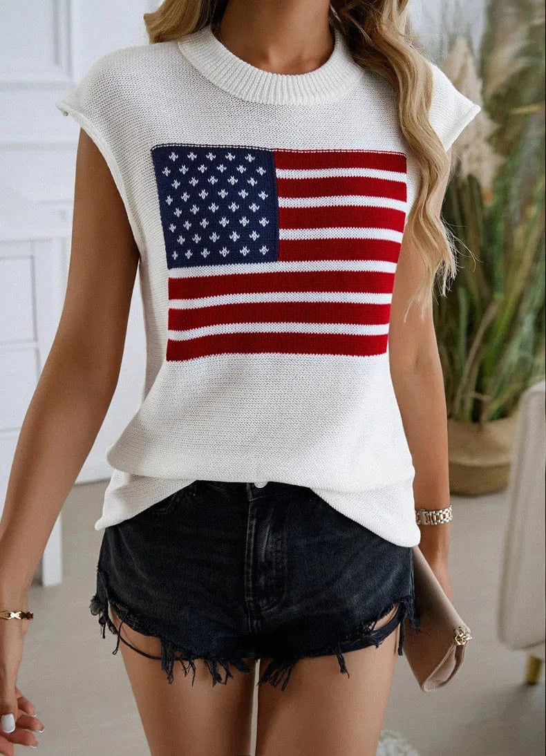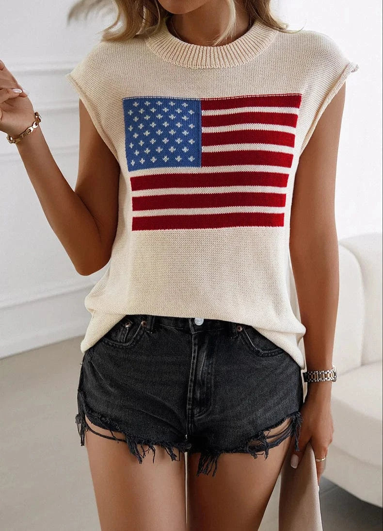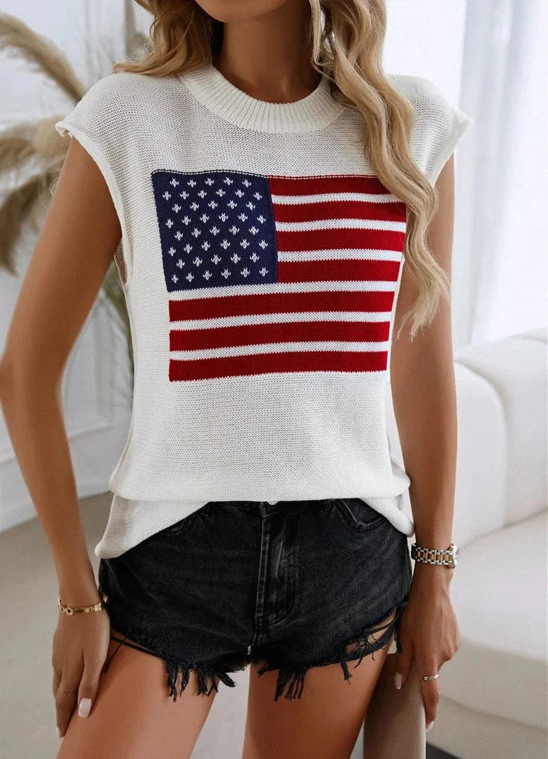 Stickad ärmlös tröja med amerikansk flagga – avslappnad sommarstil med karaktär
