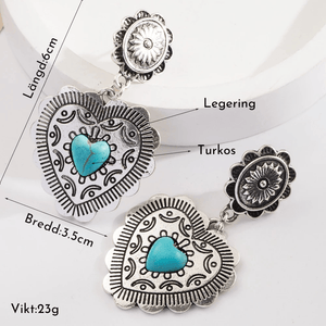 Gör ett oförglömligt intryck med dessa stora bohemiska statement-örhängen med turkos. Kombinationen av kraftfull design, etnisk inspiration och de ikoniska turkosa stenarna ger dig en accessoar som andas både frihet och karaktär.