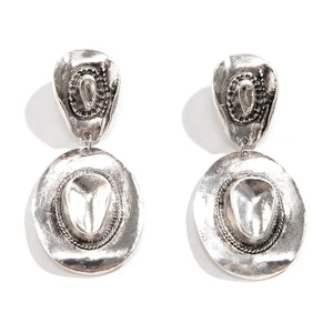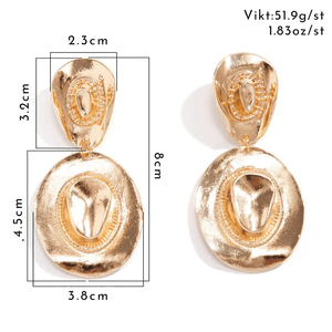 Låt din look få en djärv och unik touch med dessa stora vintageörhängen i form av cowboyhattar. Perfekta för dig som vill sticka ut, samtidigt som du behåller en elegant västernkänsla.