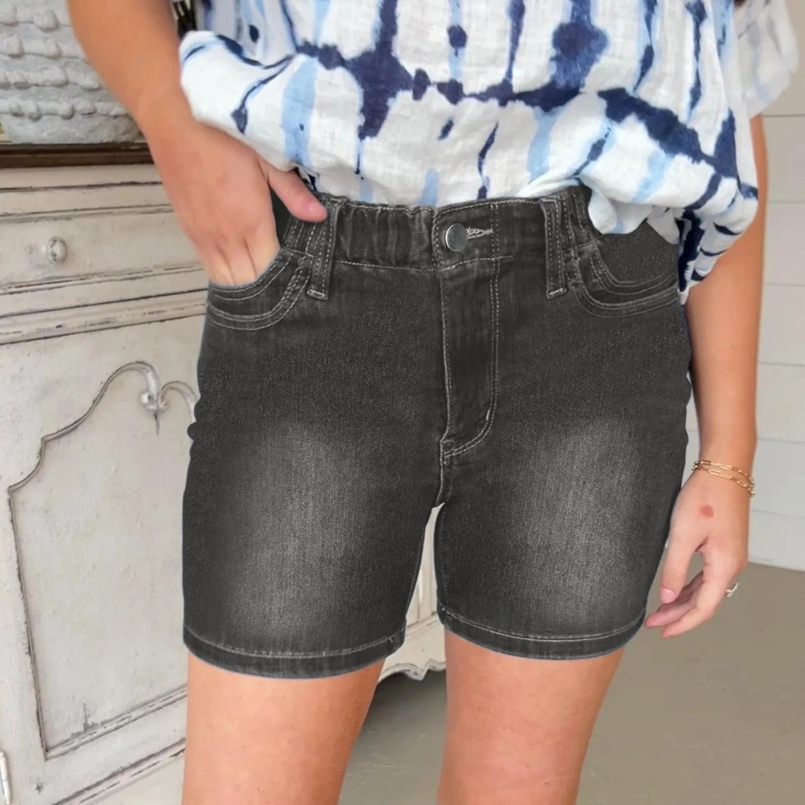 Stretch jeans shorts med hög midja: perfekt passform och stil för varje dag