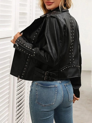 Ge din garderob en kaxig uppgradering med denna svarta bikerjacka med nitar. Perfekt för dig som vill kombinera stil, komfort och en touch av rockig attityd.