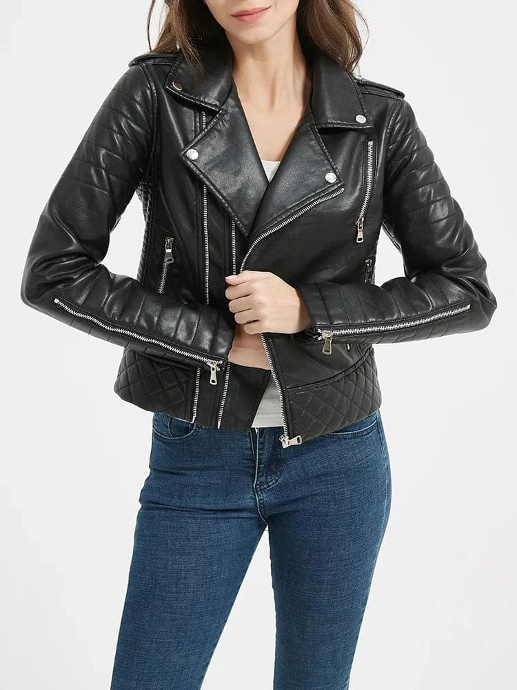 Svart bikerjacka i skinnimitation – stilren edge för din vardag