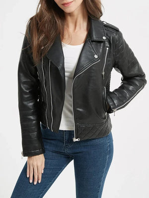 Upplev en perfekt kombination av attityd och elegans med denna svarta bikerjacka i skinnimitation. Ett tidlöst plagg som ger din outfit en rå men sofistikerad känsla – oavsett om du bär den till jeans eller klänning.