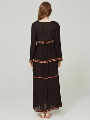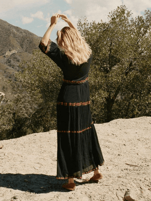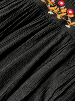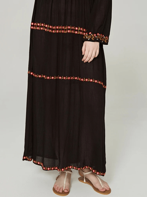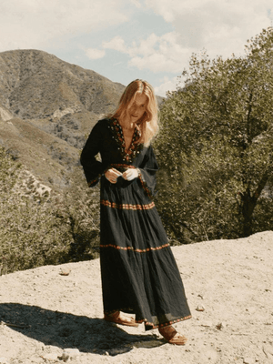 Upplev den perfekta balansen mellan avslappnad bohemisk känsla och tidlös elegans med vår svarta bohemiska klänning med vackert broderi. Perfekt för dagar fyllda av äventyr och kvällar där du vill glänsa.