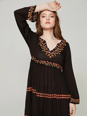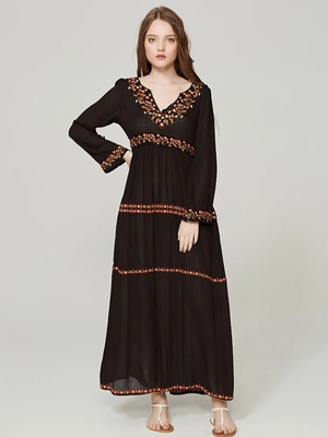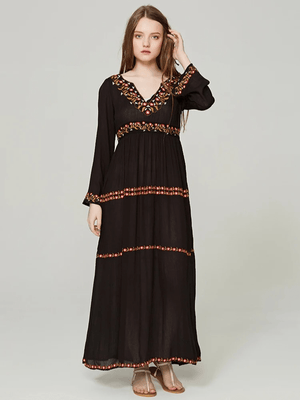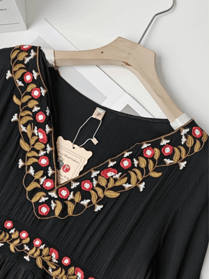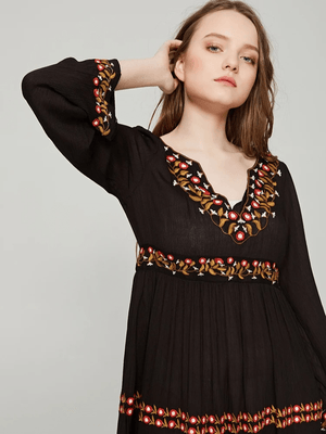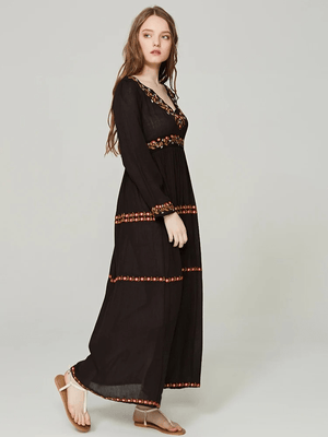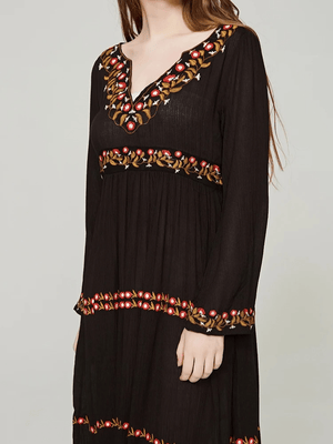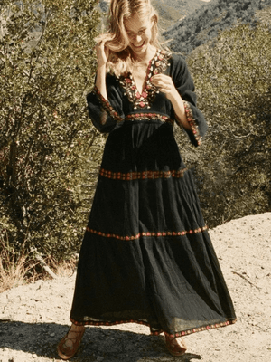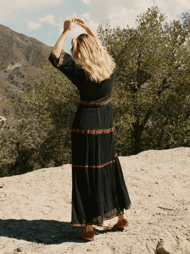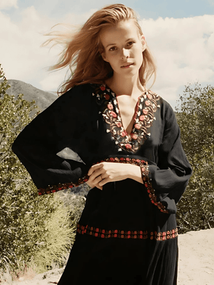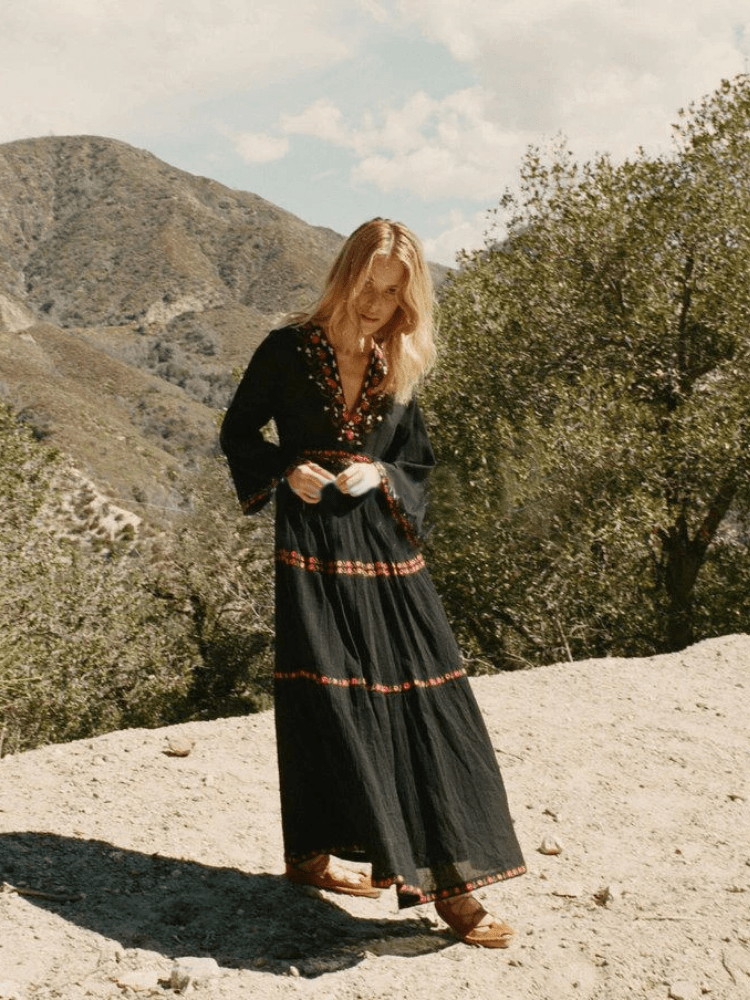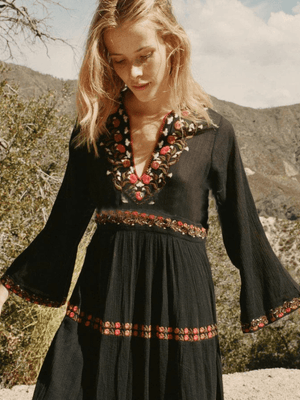 Svart bohemisk klänning med broderi: frihet och elegans i ett plagg