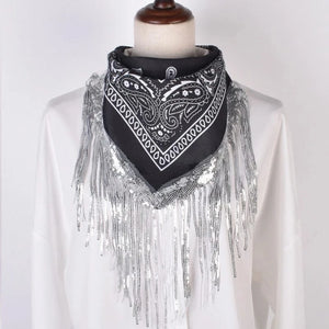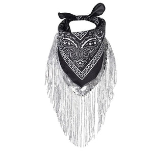Svart Cowboy Bandana med Glitterfransar – För en Glittrande Westernlook