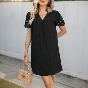 En tidlös liten svart klänning som kombinerar elegans med komfort. Perfekt för varma sommardagar eller en utekväll när du vill känna dig både chic och avslappnad.