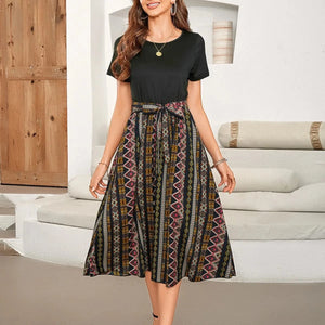 Svart midiklänning med mönstrad bohemisk kjol – din nya favorit för vår och sommar