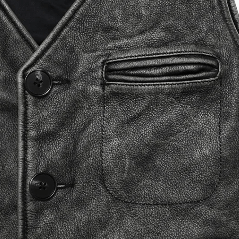 Kliv in i den genuina westernkänslan med vår svarta skinnväst för herr. Perfekt för dig som vill kombinera robust stil med avslappnad elegans – oavsett om du bär den på ridturen, i staden eller vid grillen en sommarkväll. Den slitstarka läderfinishen och den vintage-inspirerade looken ger dig en självsäker stil som håller över tid.
