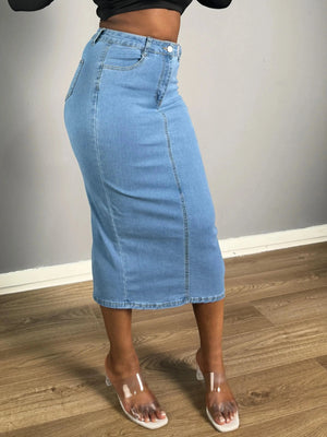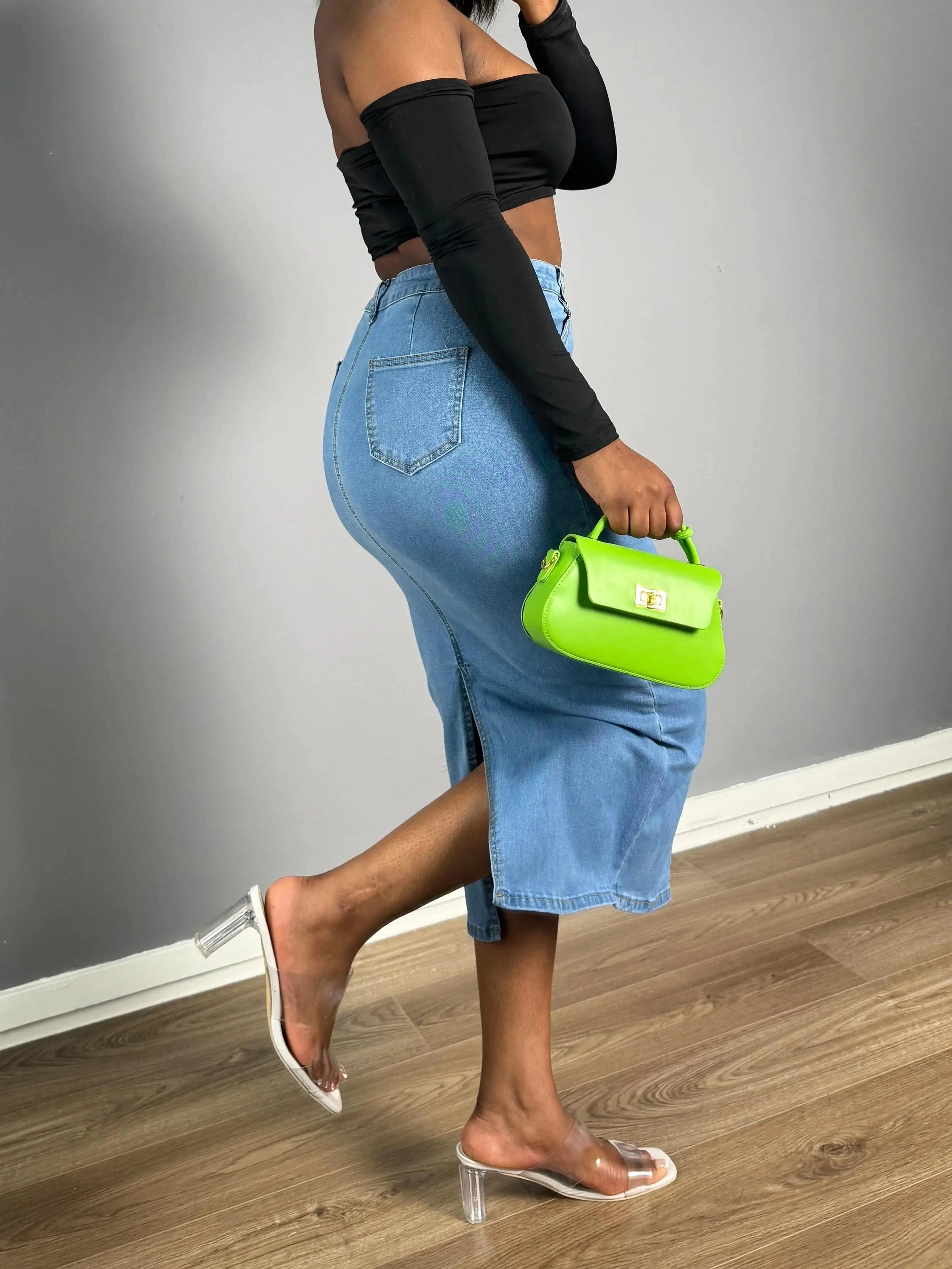 Varför välja en kroppsnära jeanskjol i midilängd?