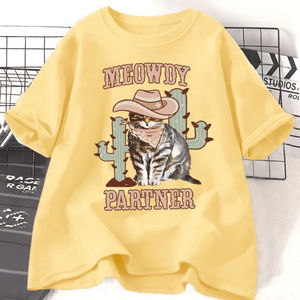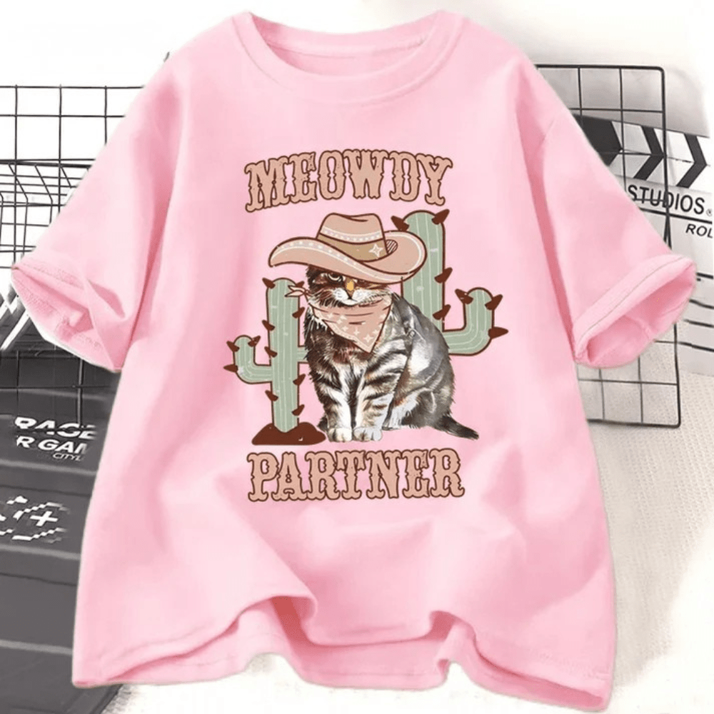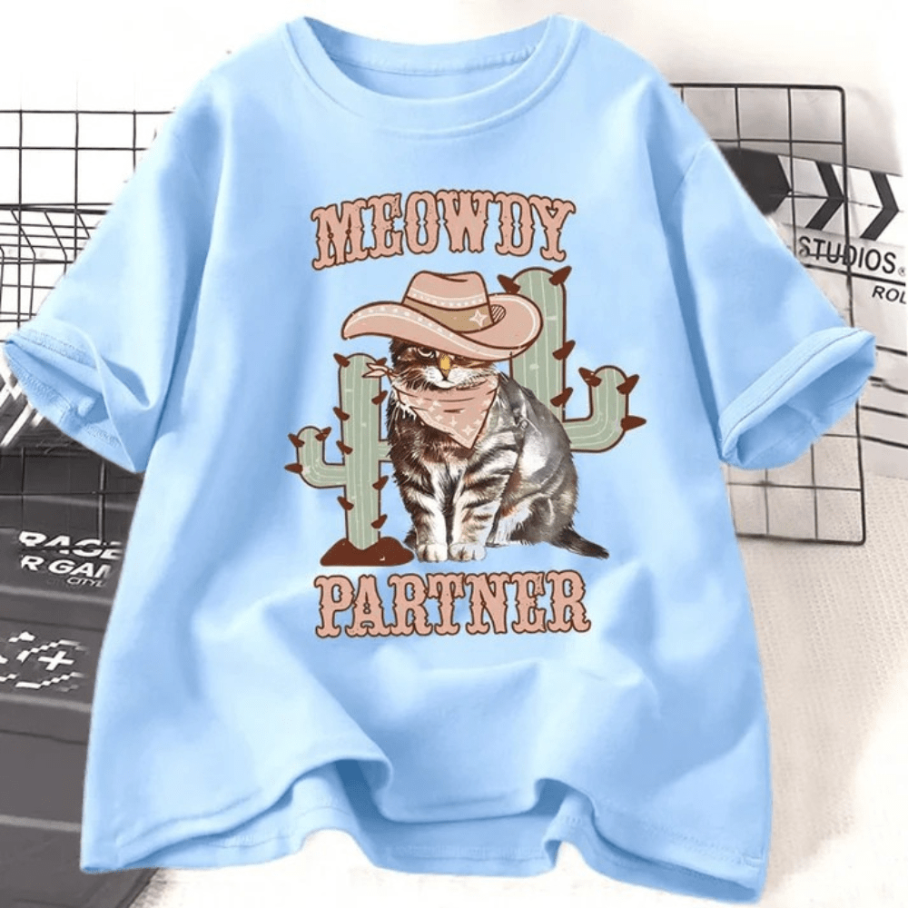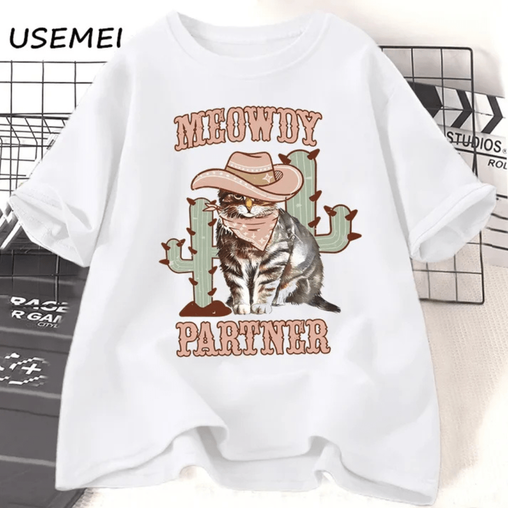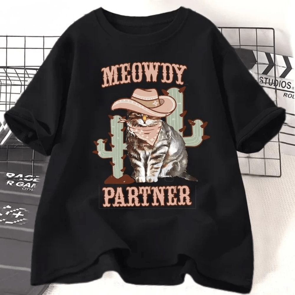 Tshirt med cowboykatt "Meowdy Partner" – för en lekfull westernstil i din vardag