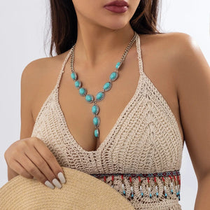 Låt detta turkosa sten halsband bli din nya favoritaccessoar som förvandlar varje outfit till ett statement.