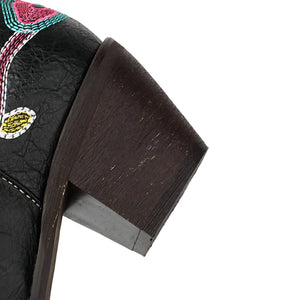 Låt dig svepas med av cowgirl-drömmen i dessa sagolika boots som kombinerar rustik charm med feminina broderier. Med sin höga skärning, färgstarka fjärilsbrodyr och bekväma klack är de lika perfekta för en dans på saloonen som för en promenad genom stan. Oavsett om du väljer rosa, svart eller brun – de här bootsen drar blickarna till sig.