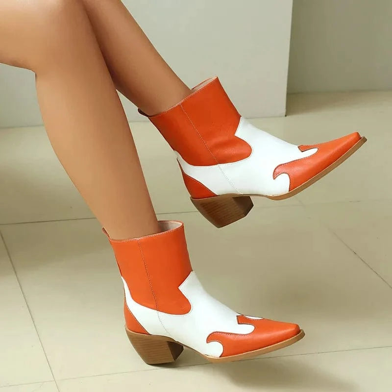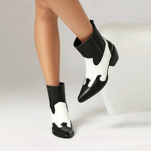 Tvåfärgade Låga Cowboy Boots för Dam: retrostil med modern twist