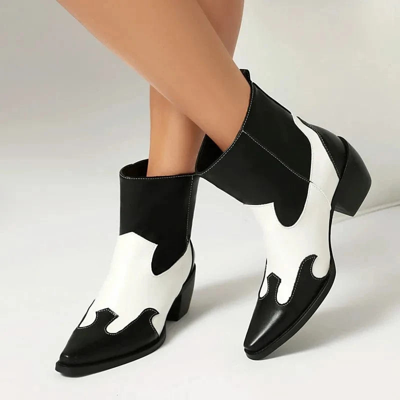 Tvåfärgade Låga Cowboy Boots för Dam