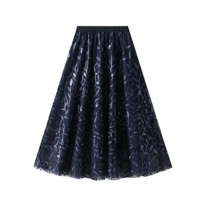 Låt varje steg du tar glimra som en sommarkväll vid lägerelden. Denna tyllkjol med paljettbroderi ger din outfit en unik kombination av mjuk rörelse och gnistrande detaljer – perfekt för både vardagsromantik och festliga stunder.