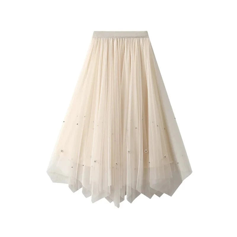 Tyllkjol med pärlbroderi och asymmetrisk fåll – din nyckel till sofistikerad västernromantik