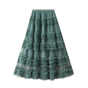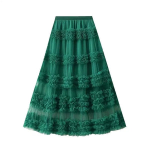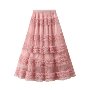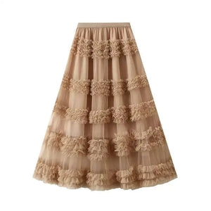 Lyft varje steg med denna drömlika tyllkjol som kombinerar luftig spets med ett elegant fall. Perfekt när du vill känna dig både fri och sofistikerad i din vardag eller till fest.