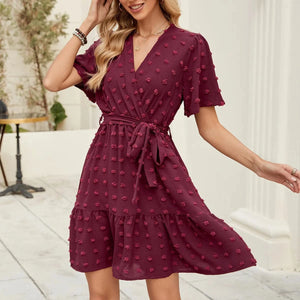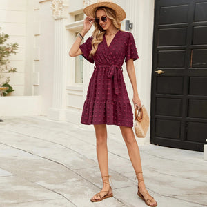 Lyft din sommarstil med denna vinröda klänning som kombinerar elegans och komfort. Perfekt för både vardagliga äventyr och speciella tillfällen.