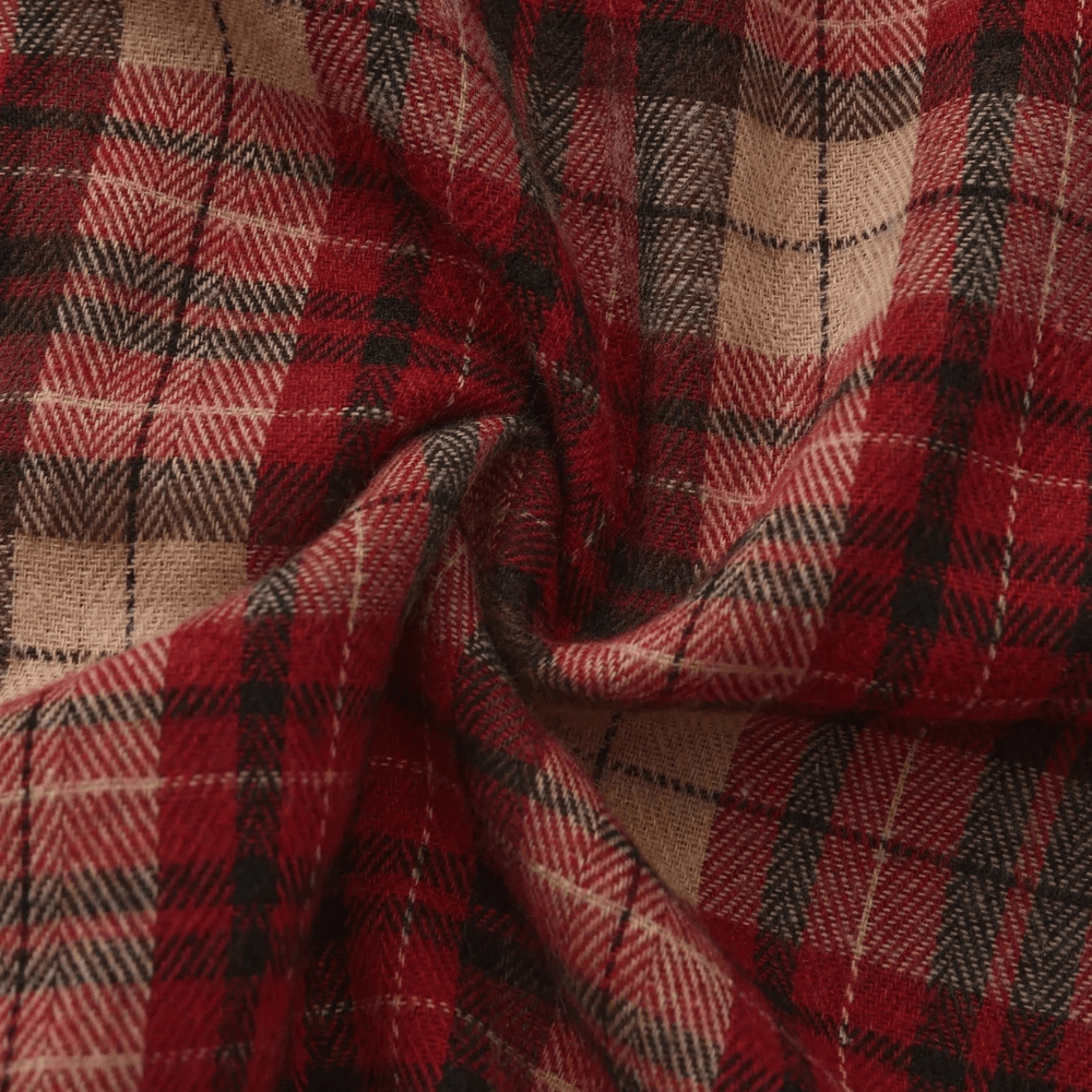 En klassisk rutig flanellskjorta i varm vinröd ton som kombinerar tidlös cowboy-stil med mjuk komfort. Perfekt för svala vår- och höstdagar – lika snygg till jeans som under en väst.