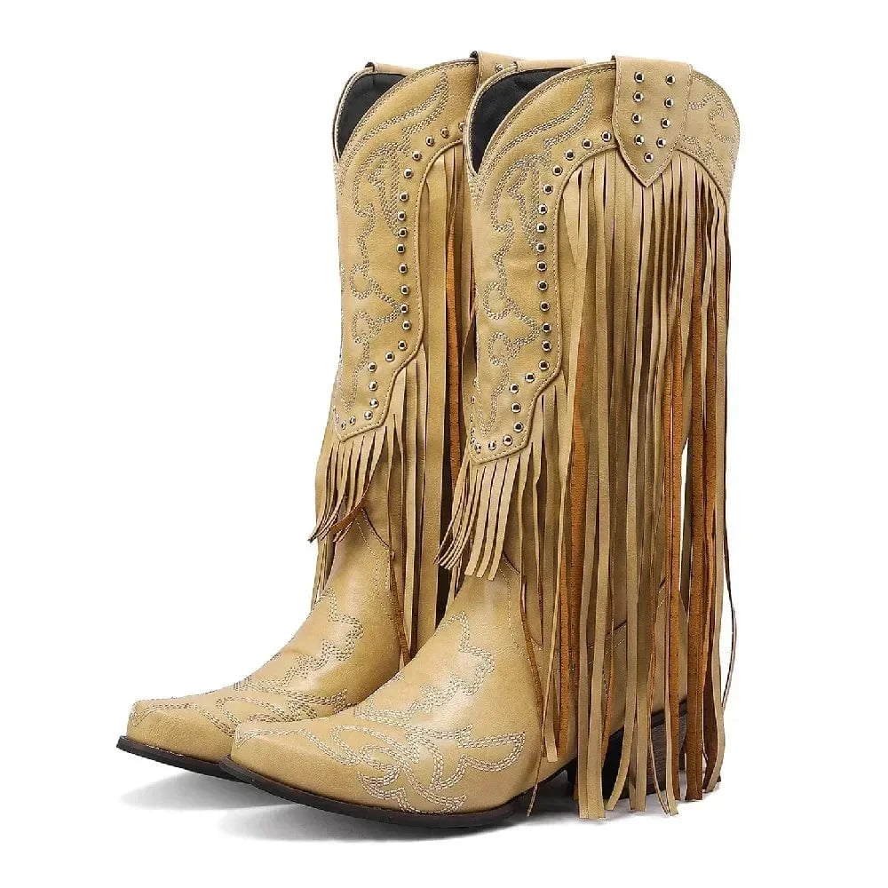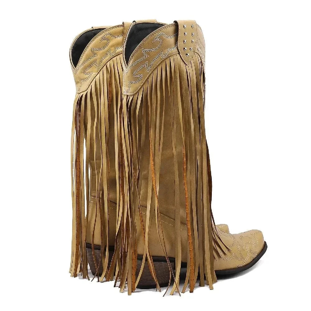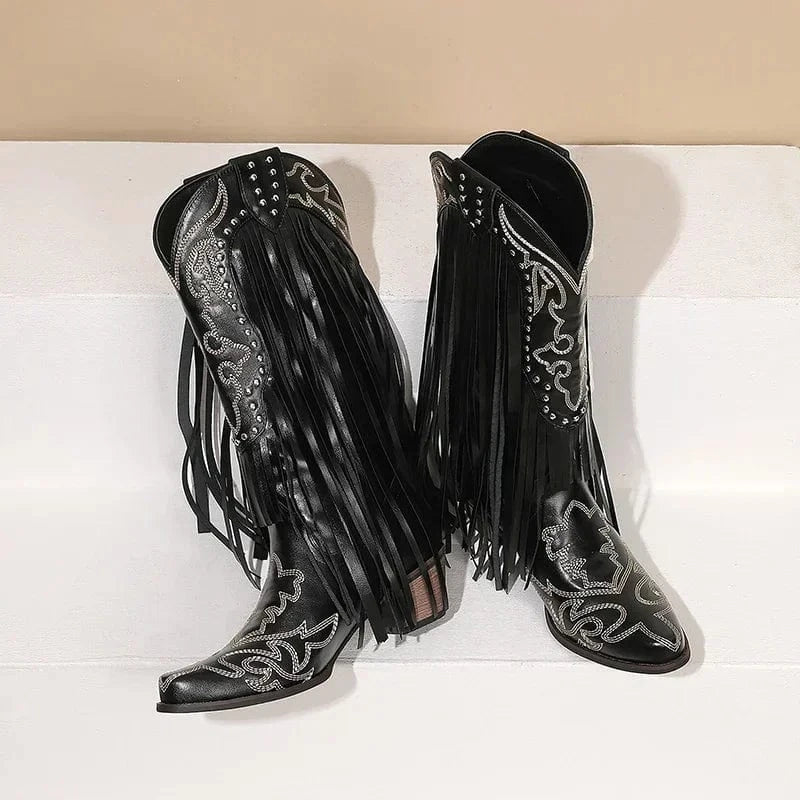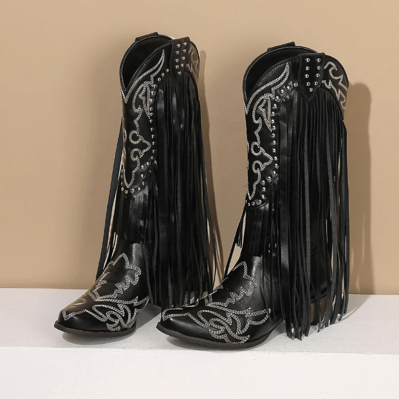 Förvandla varje steg till ett statement. Dessa vintageinspirerade cowboyboots är skapade för dig som vill ha både attityd och stil – oavsett om du är på dansgolvet, en kväll på stan eller lever din egen cowgirl-dröm till vardags. De mjuka fransarna rör sig med dig och ger extra drama i varje rörelse.