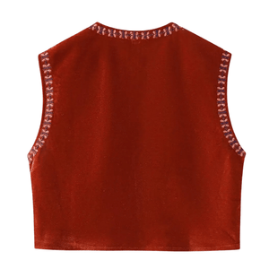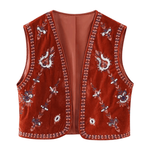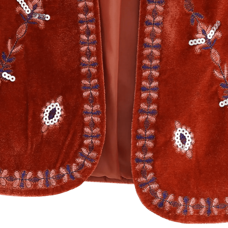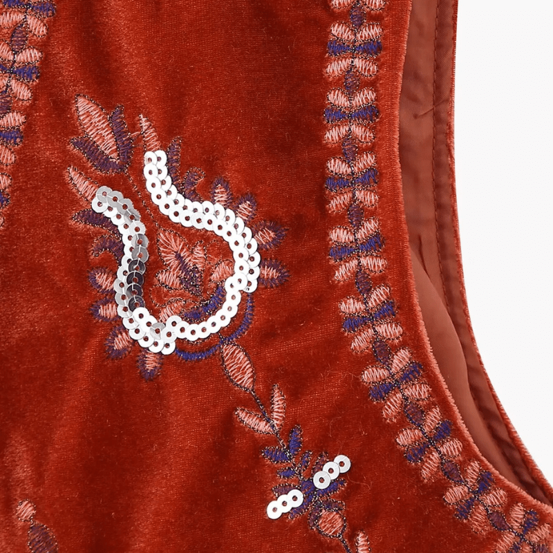 Vintage-inspirerad damväst i sammet med blombroderi: din boho-chic följeslagare