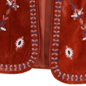 Vintage-inspirerad Dam Väst i Sammet med Blombroderi