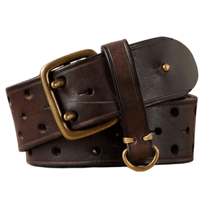 Känn kraften i varje steg med vårt westernbälte i grovt läder och dubbla metallspännen