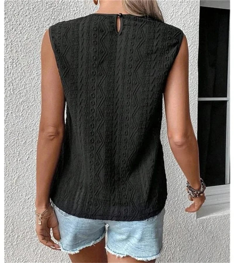 Upplev den perfekta blandningen av romantik och sofistikerad stil med denna virkade blus. Med sina intrikata spetsdetaljer och luftiga känsla blir den snabbt en favorit för både vardag och festliga tillfällen.