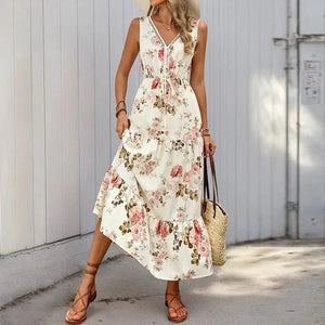 Ge din sommargarderob ett lyft med denna luftiga och eleganta vita blommiga klänning. Perfekt för soliga dagar, picknickar eller en kvällspromenad längs stranden – du kommer att känna dig både bekväm och oemotståndlig.
