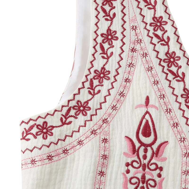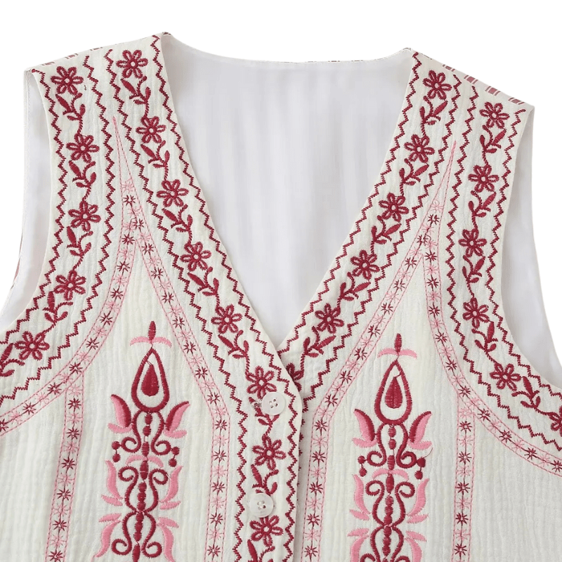 Lyft din outfit med vår vita broderade väst som kombinerar bohemisk elegans med tidlös charm. Perfekt för att ge din look ett unikt och personligt uttryck – året runt.