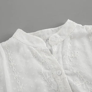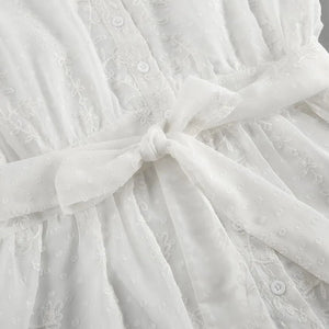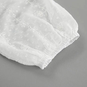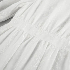 Låt din stil blomstra i denna vita klänning med puffärm. Ett elegant och lekfullt plagg som kombinerar lätthet, rörelsefrihet och bohemisk charm – perfekt för både vardag och speciella tillfällen.