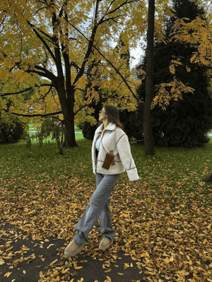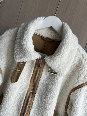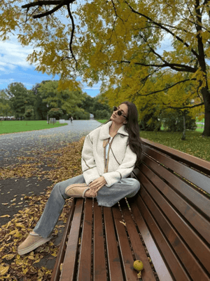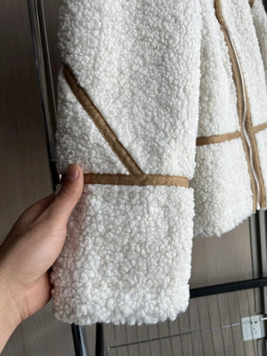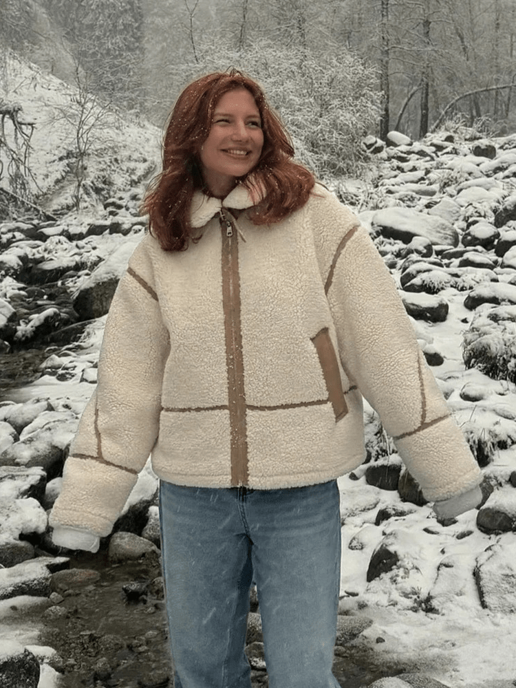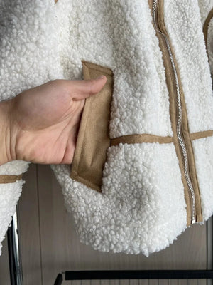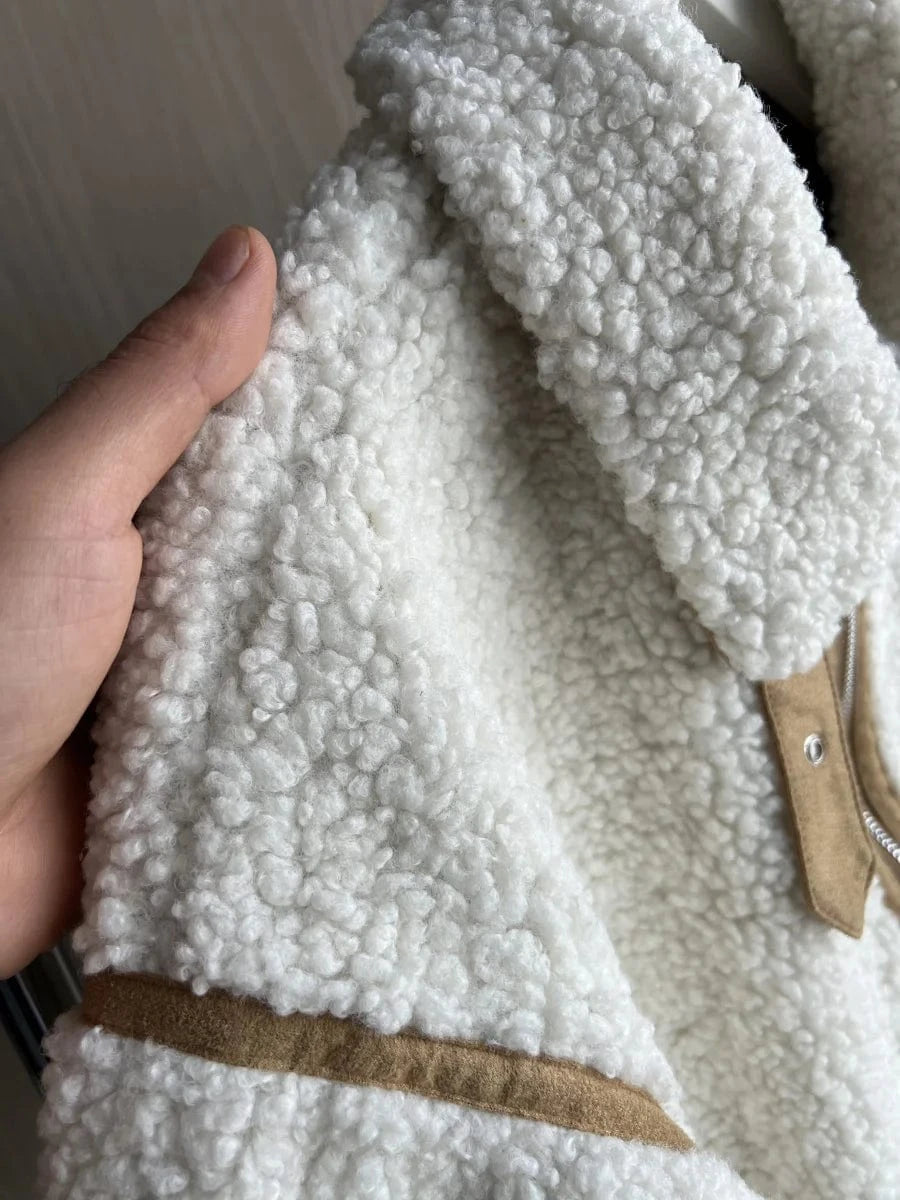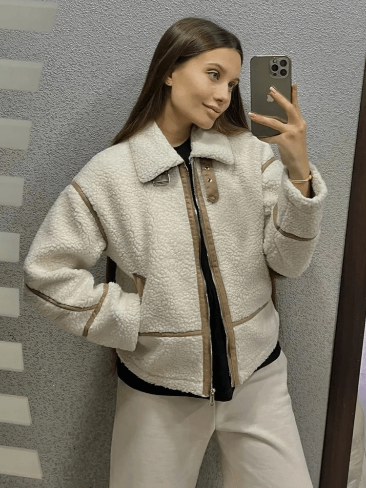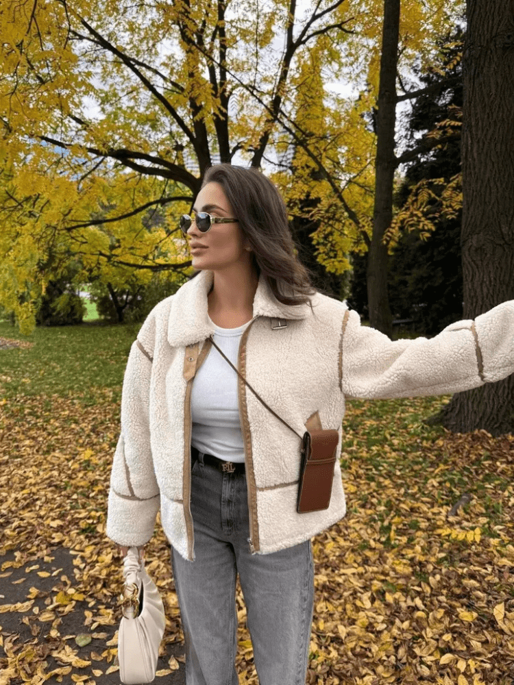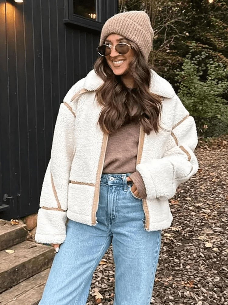 Vit teddy jacka dam – perfekt för kalla vinterdagar