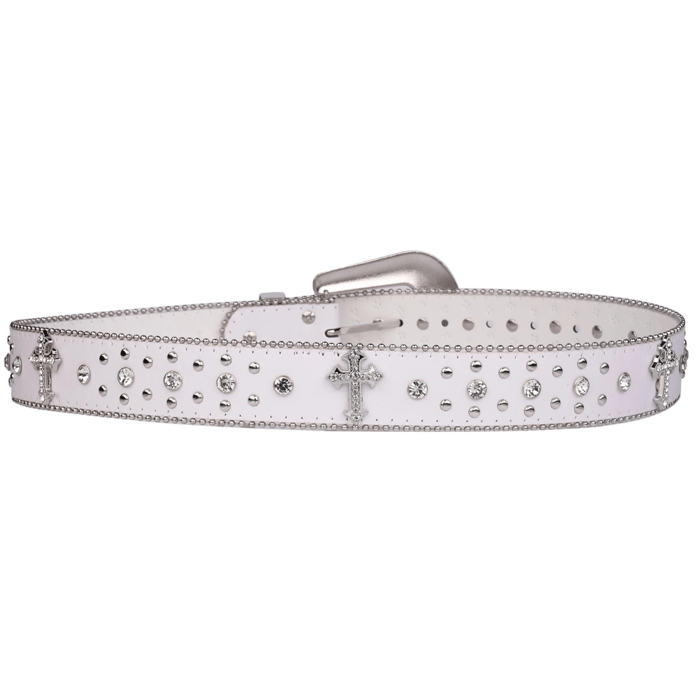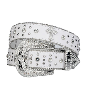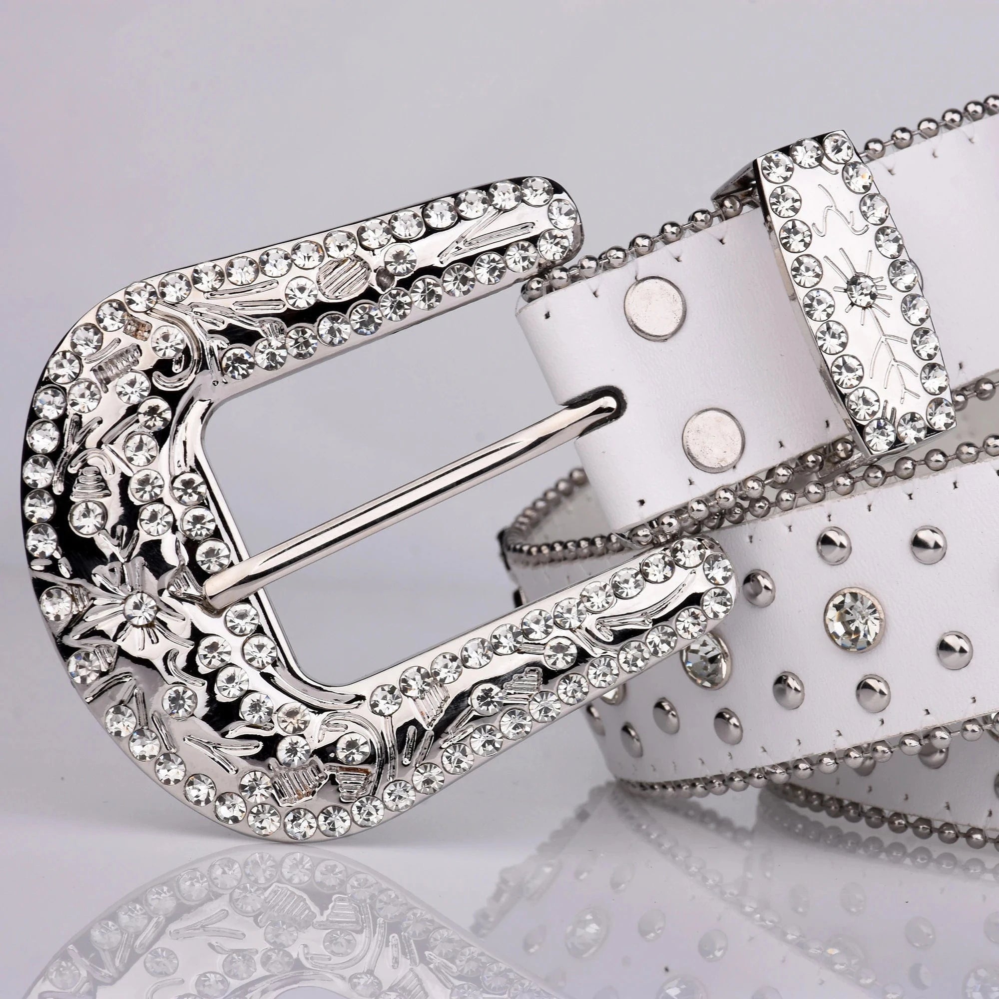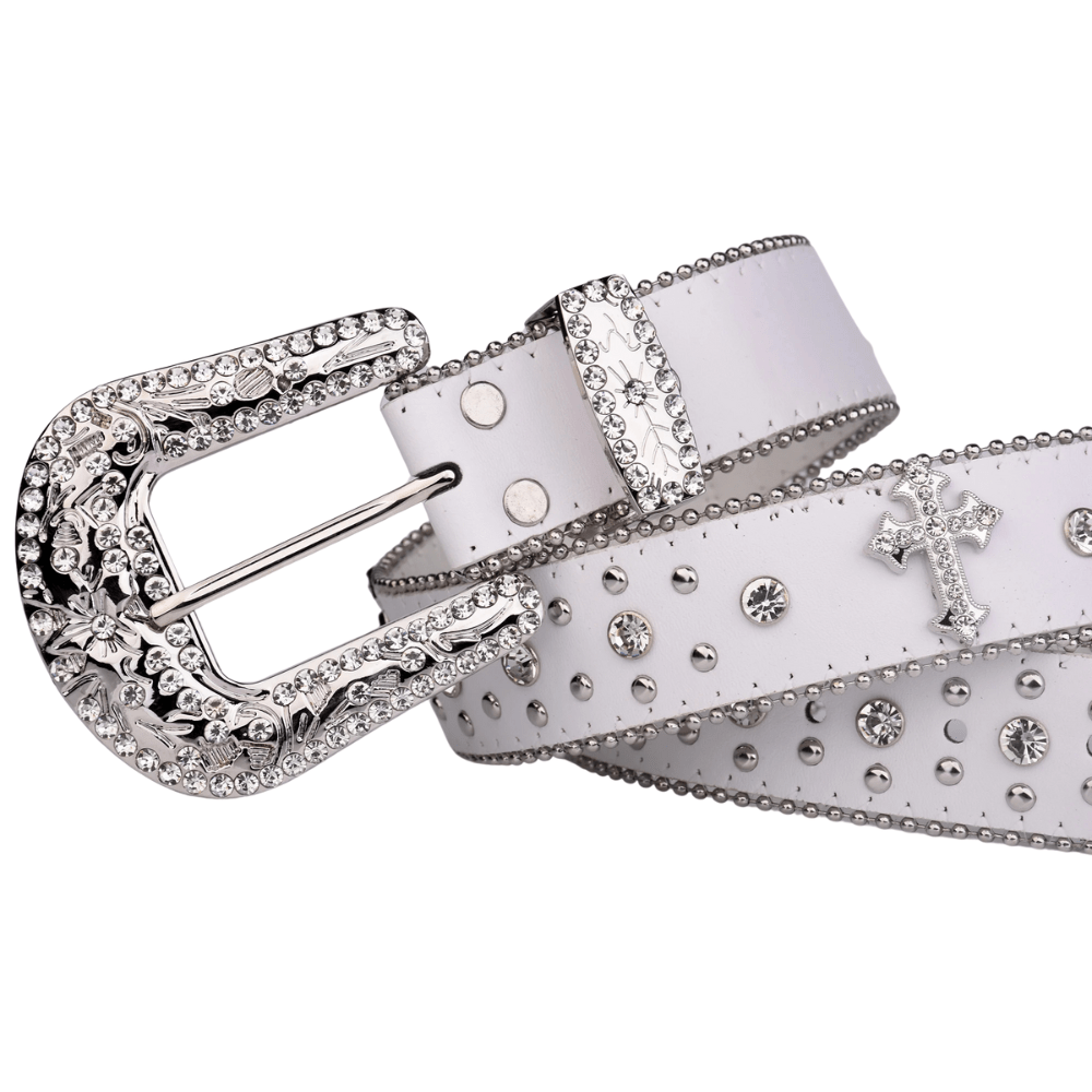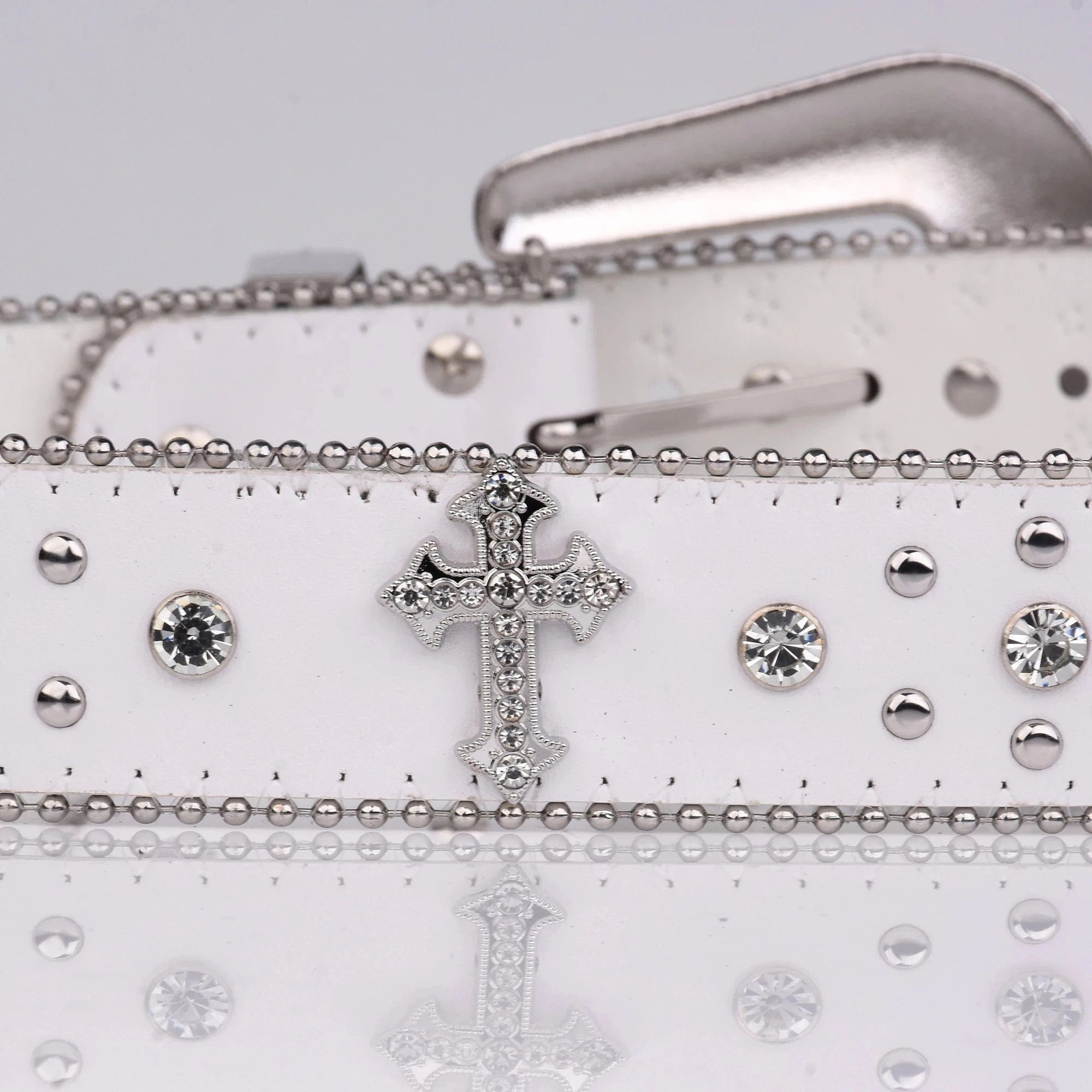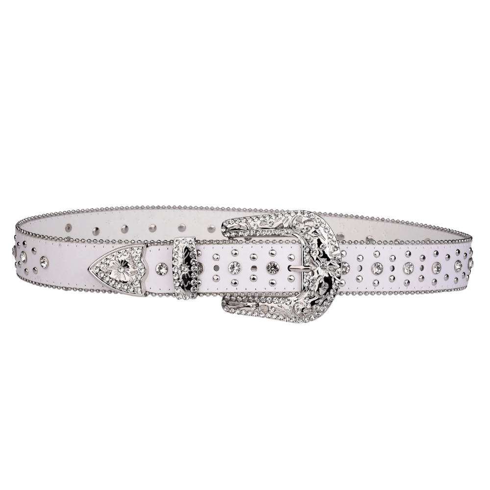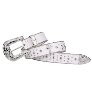 Westernbälte i vitt PU-läder med strass – där punk möter sofistikerad elegans