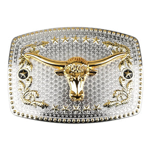 Ett bältesspänne som kombinerar styrka, elegans och westerntradition. Med skinande guld- och silverdetaljer, stjärntextur och kraftfulla motiv blir det en accessoar som drar blickarna till sig.