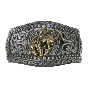 - Stil: Präglad western med antiksilver och gulddetaljer