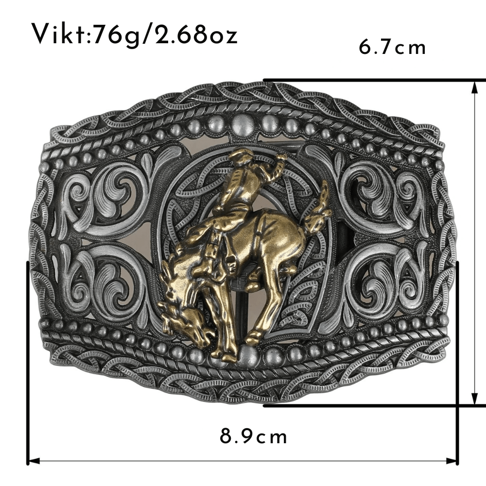Ge din outfit en touch av äkta westernlyx med detta detaljerade bältesspänne i metall. Perfekt för dig som vill bära något unikt, kraftfullt och stilrent – både till vardag och fest.