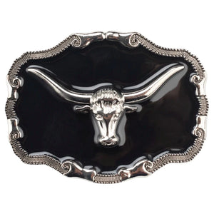 Ge din look en kraftfull och sofistikerad känsla med dessa bältesspännen i svart emalj. Med detaljerade djurmotiv i metall blir de ett tidlöst inslag i din westernstil.