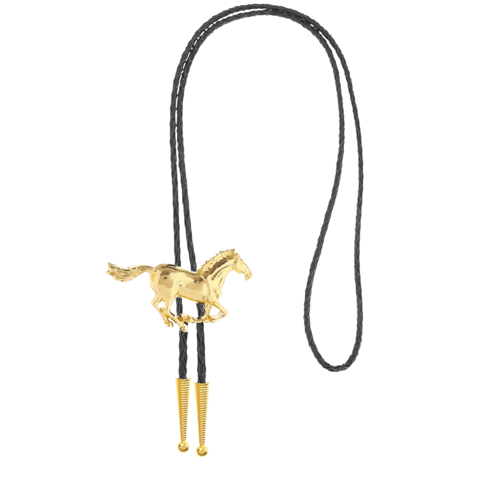 Hästen är frihetens symbol – och du bär den med stil. Denna westerninspirerade bolo tie med galopperande häst ger din outfit liv och personlighet. En tidlös accessoar för dig som vågar sticka ut.