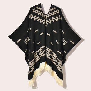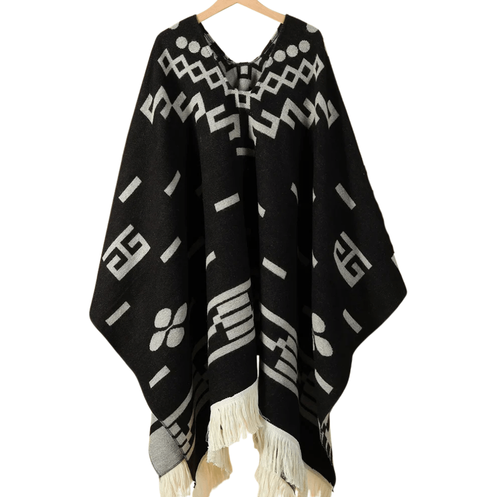 Lyft din outfit med en poncho som kombinerar klassisk western-känsla med modern elegans. Den här ponchon är perfekt för dig som vill hålla dig varm samtidigt som du uttrycker din unika stil.