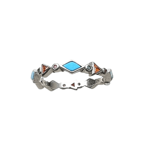 Låt din stil ta en sväng genom vidsträckta präriefält och solblekta ökenvägar. Den här boho-inspirerade Westernringen i 925 silver med turkossten är skapad för dig som älskar färg, frihet och detaljer som berättar en historia. En lekfull mix av former och stenar ger ringen en unik, nästan magisk aura – perfekt för dig som vill uttrycka din personliga stil utan att säga ett ord.