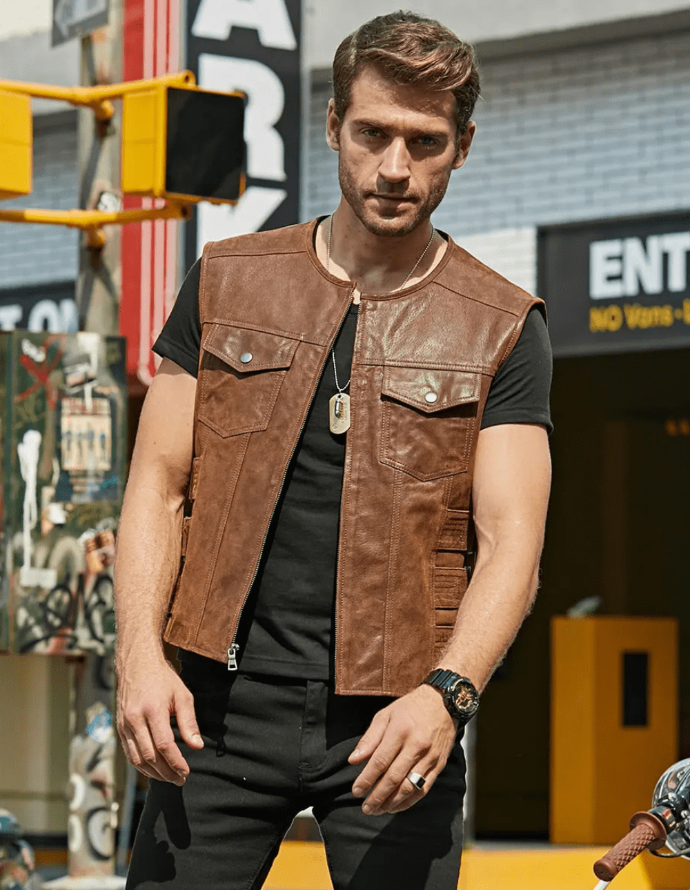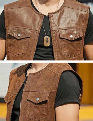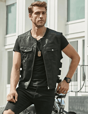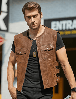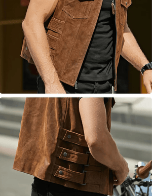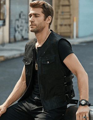 Upptäck en väst som kombinerar rå maskulinitet med sofistikerad design. Perfekt för dig som vill bära något lika bekvämt som det är stilfullt – oavsett om du kör hoj eller bara vill addera lite westernkänsla till din look.