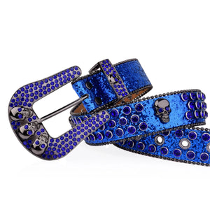 Därför älskar våra kunder detta gnistrande blå bälte med dödskallar