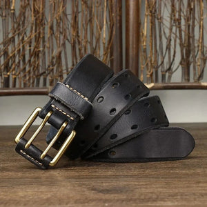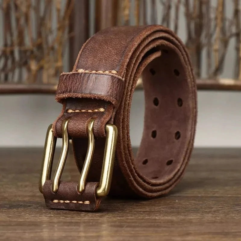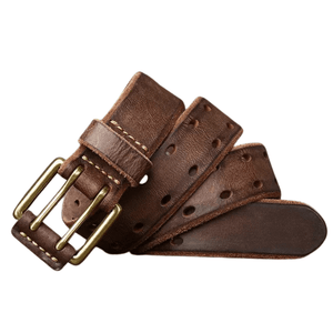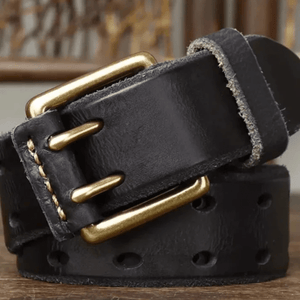 Kraftfullt, maskulint och tidlöst – detta westernbälte i äkta kohud är en statement-accessoar som lyfter varje look. Med sin dubbla spänndesign och patinerade läderfinish kombinerar det både funktion och stil.