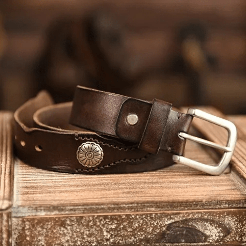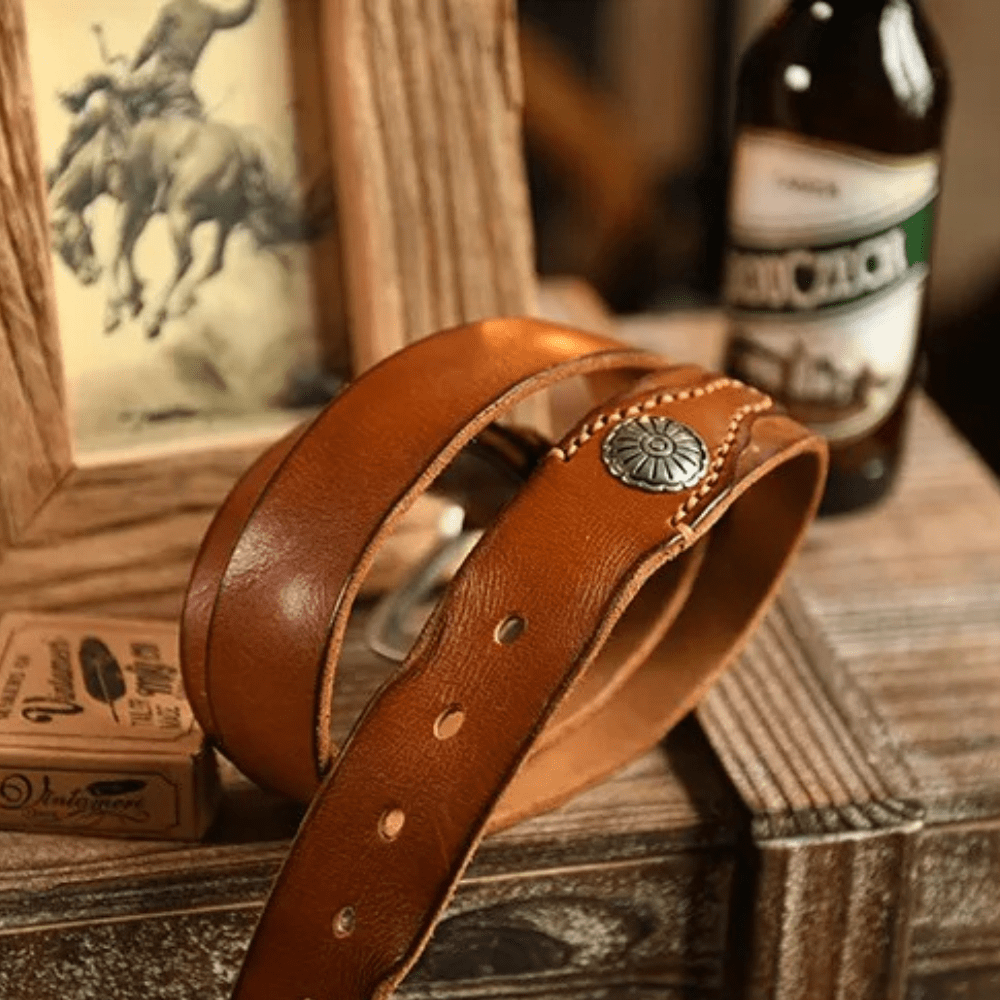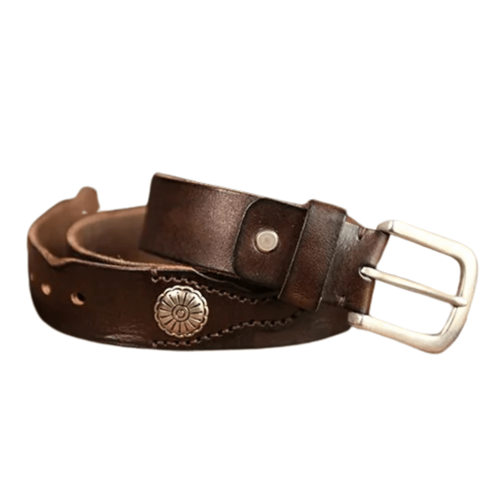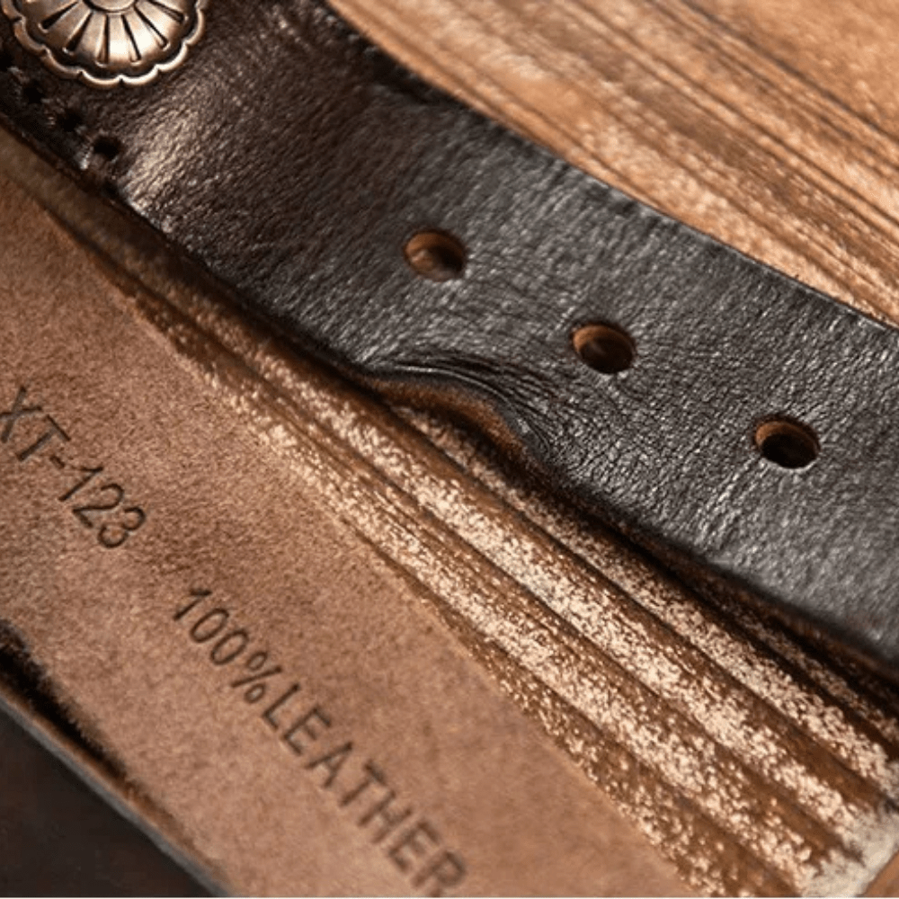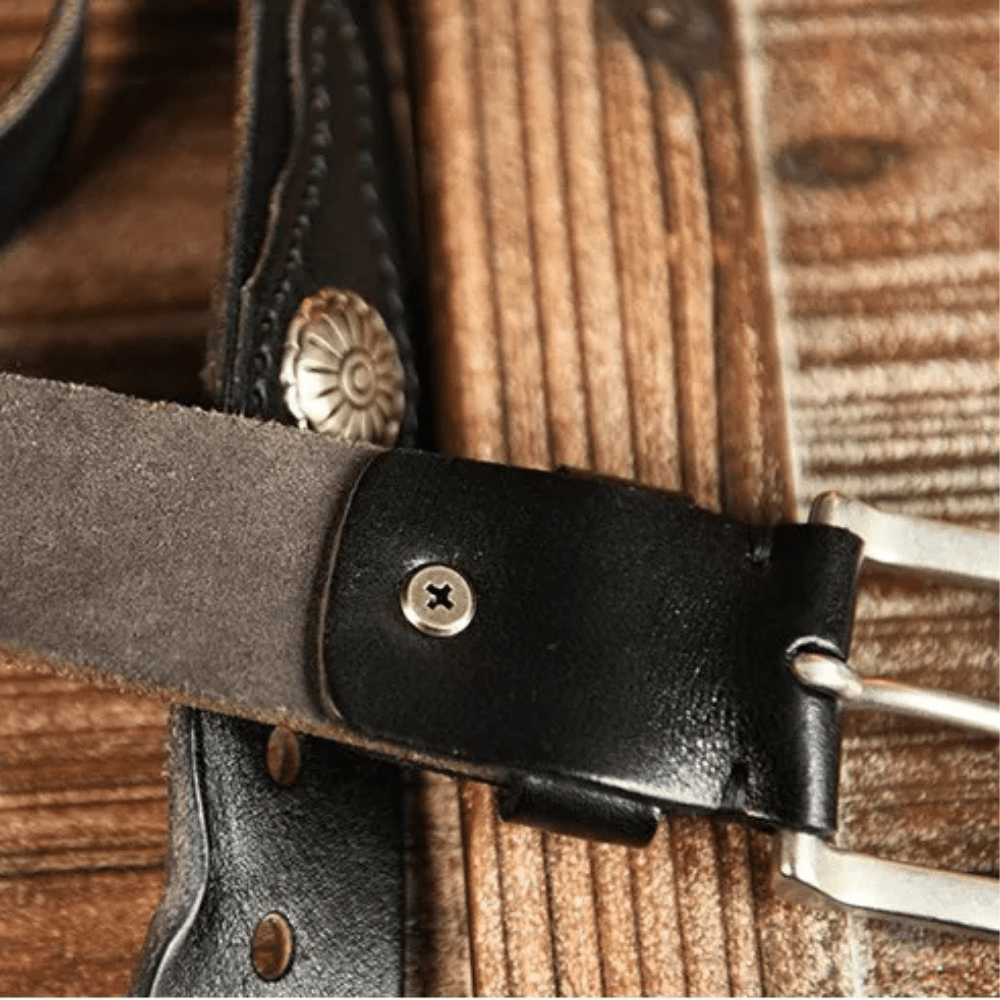 Westernbälte i Äkta Läder med Nitar och Retro Spänne
