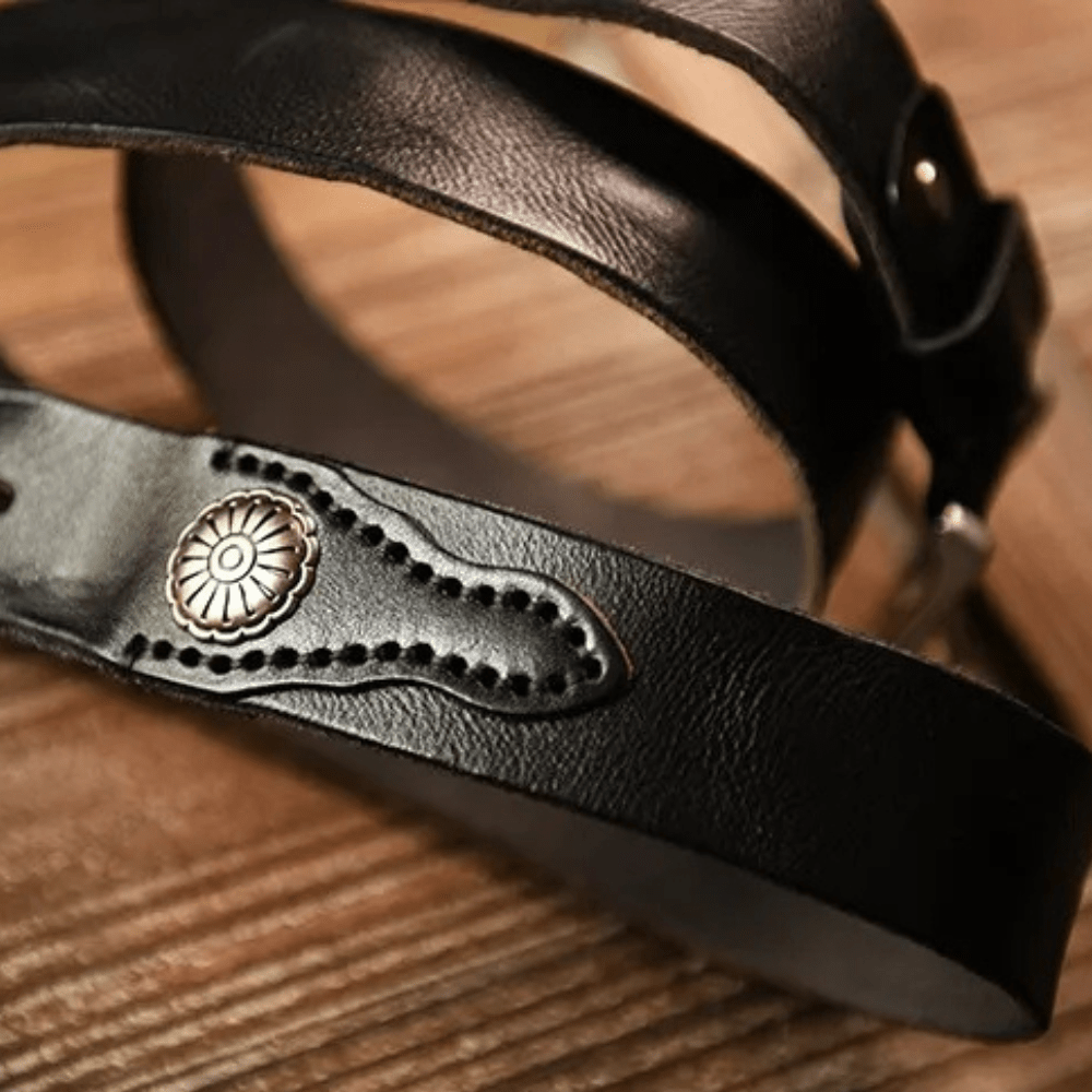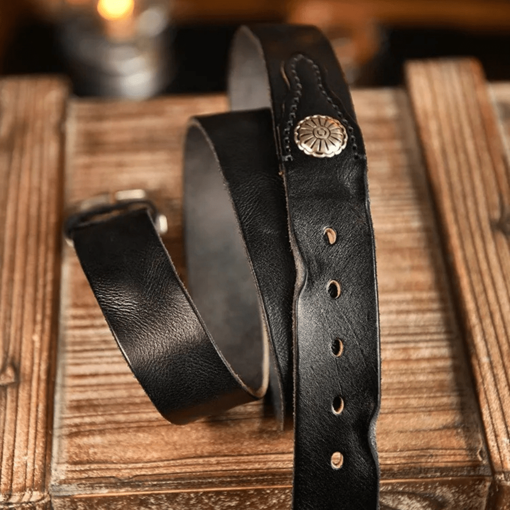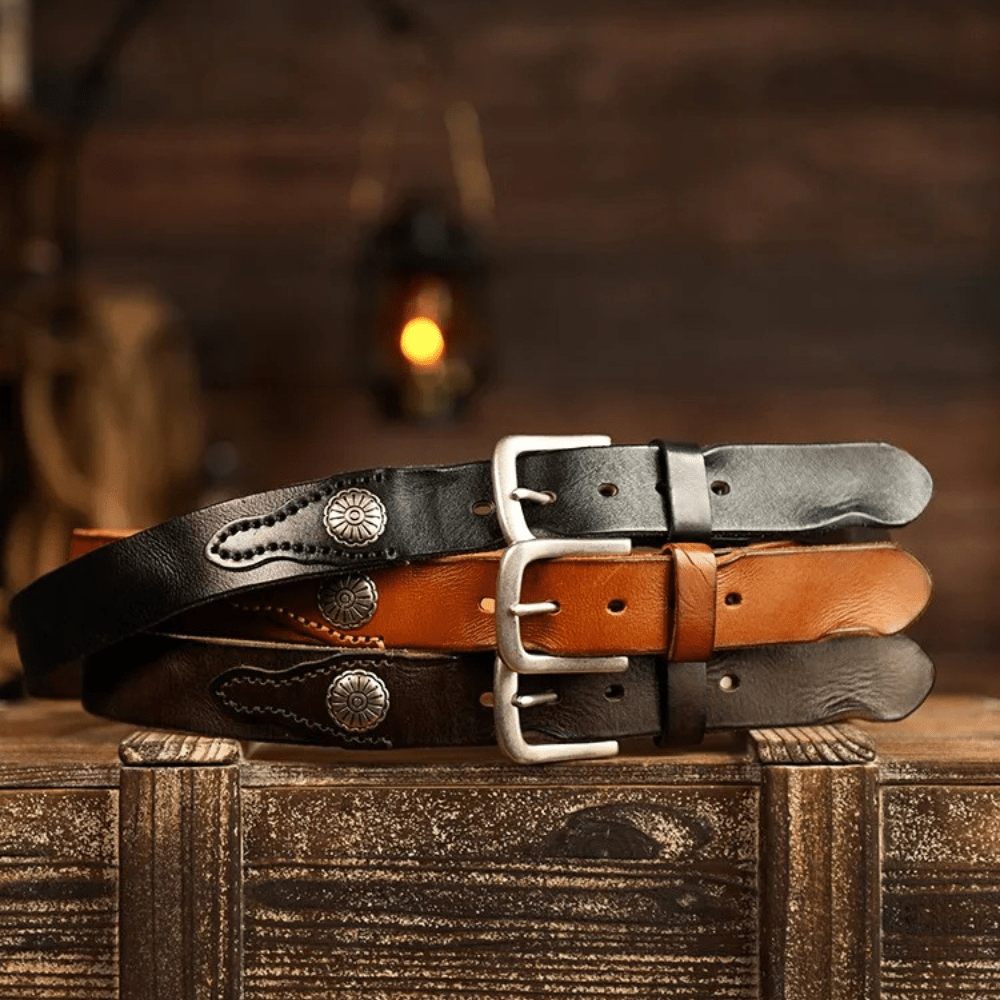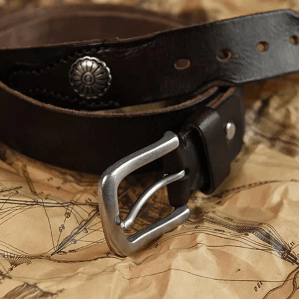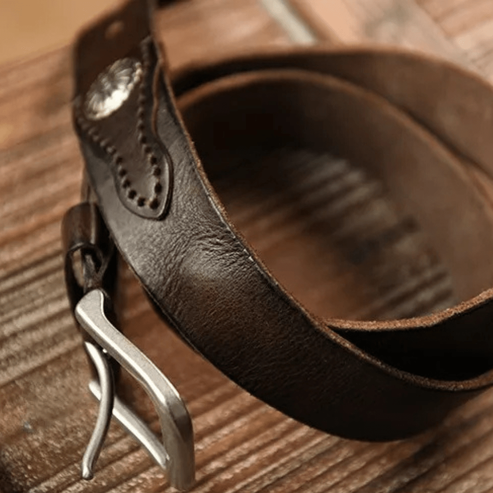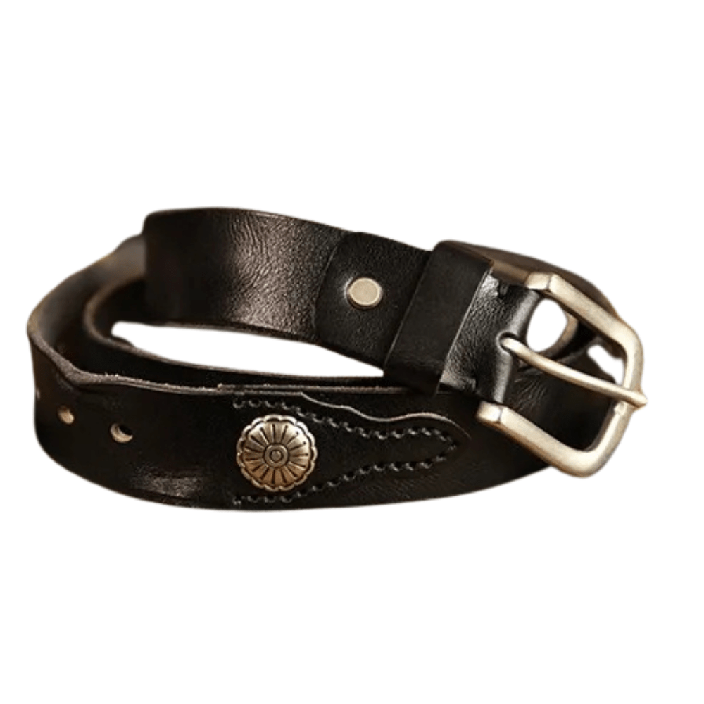 Westernbälte i Äkta Läder med Nitar och Retro Spänne