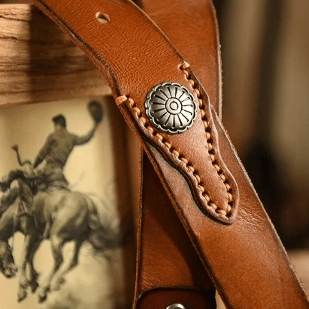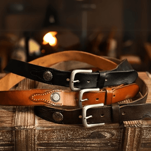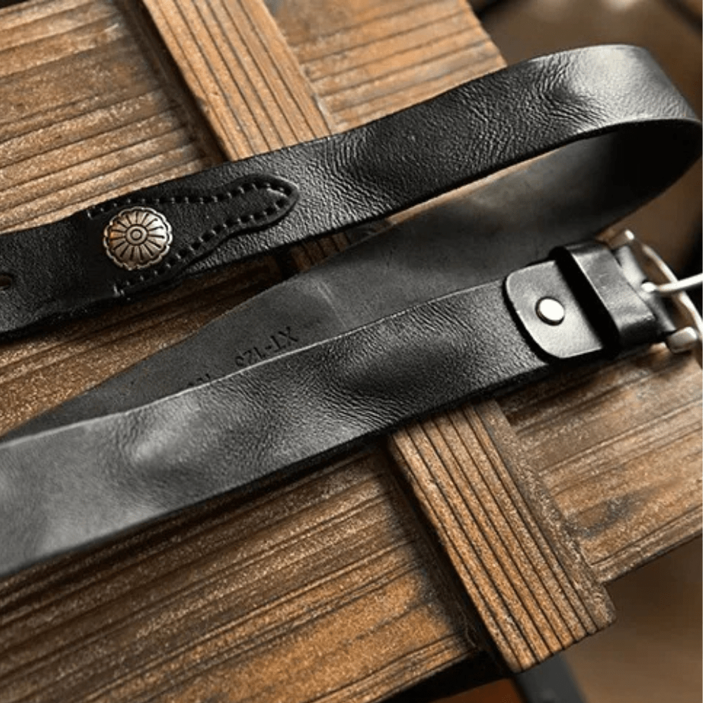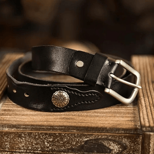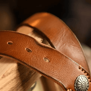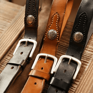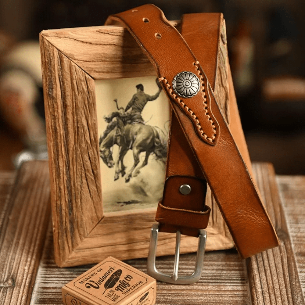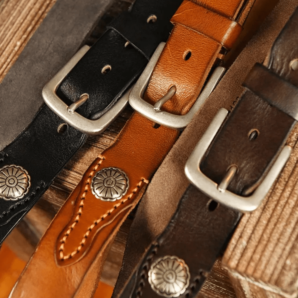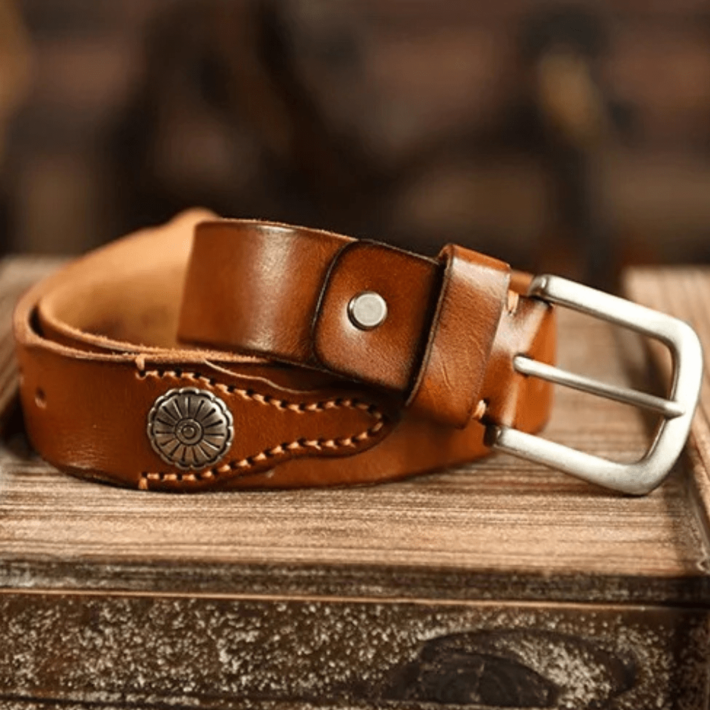 Westernbälte i Äkta Läder med Nitar och Retro Spänne