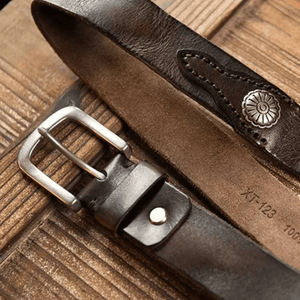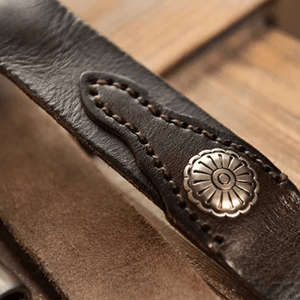 Upptäck ett westernbälte i fullkornigt kohudsläder som kombinerar rustik charm med tidlös elegans. Med sina dekorativa nitar och ett slitstarkt retrospänne ger det en genuin cowboy-känsla till varje outfit – perfekt för dig som vill uttrycka en stark, självsäker stil.