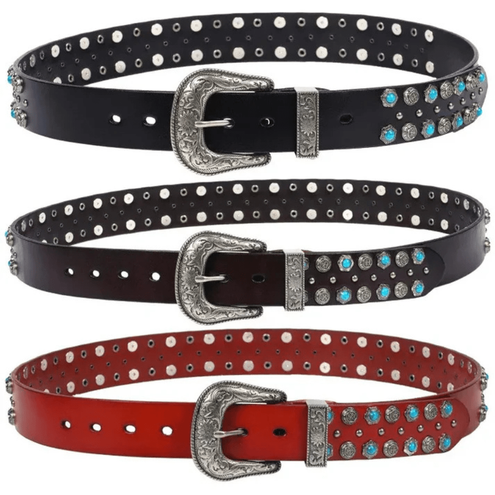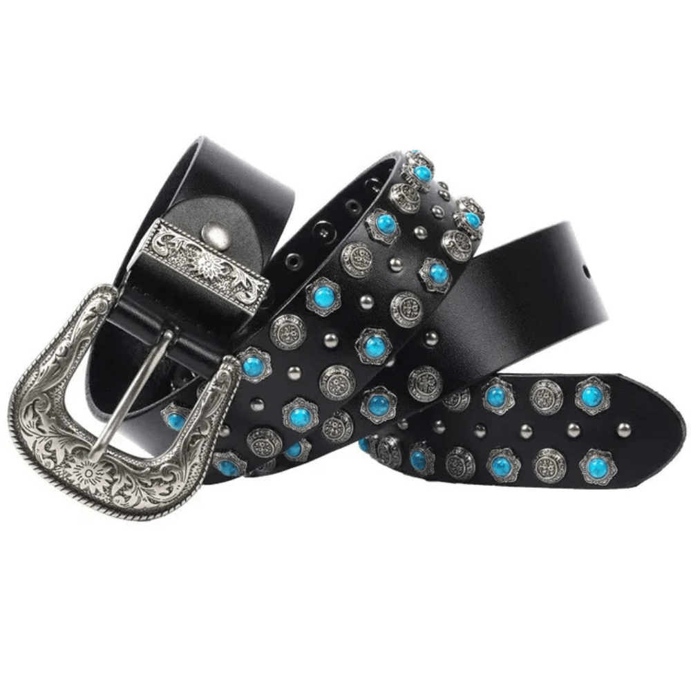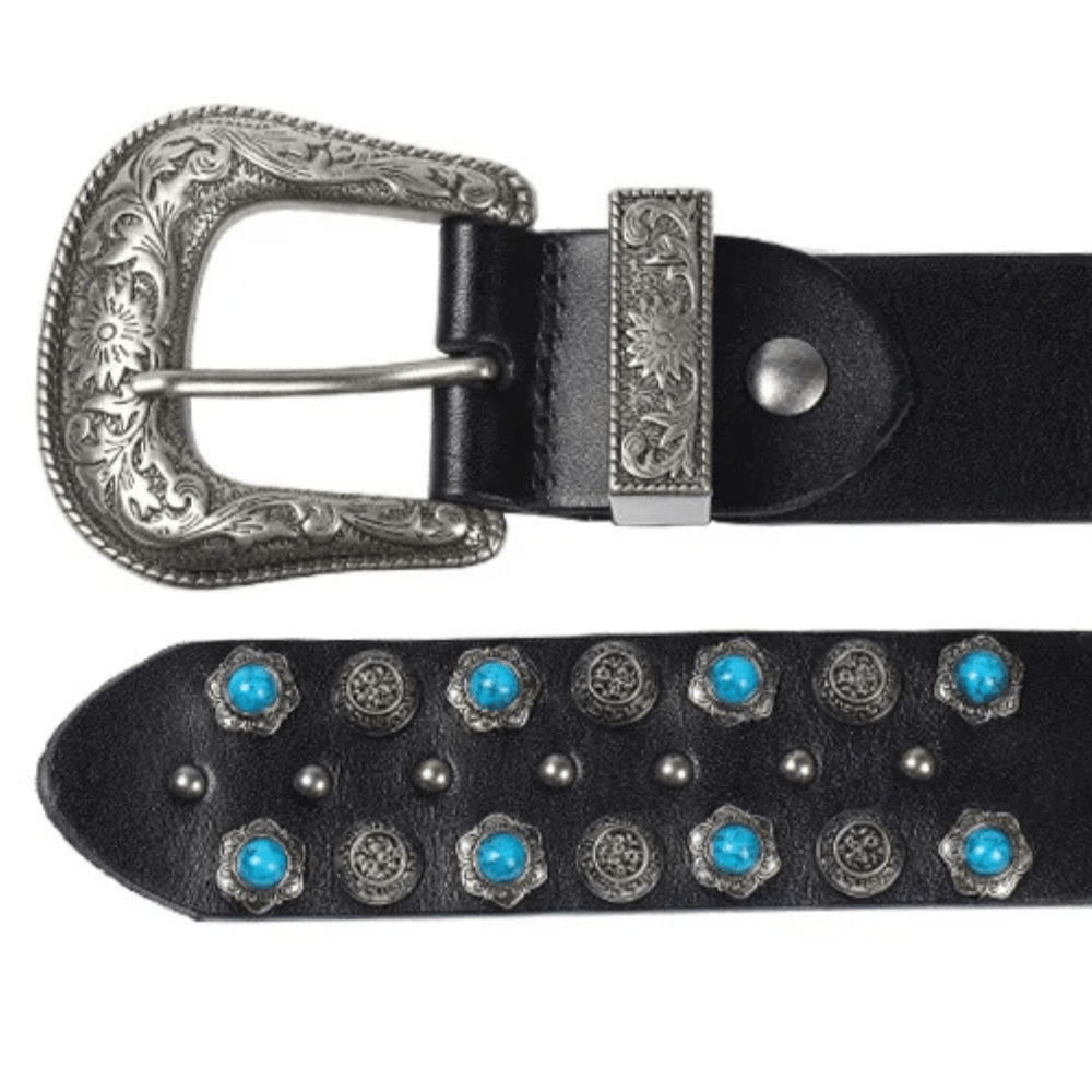 Westernbälte i Äkta Läder med Nitar och Turkosdetaljer