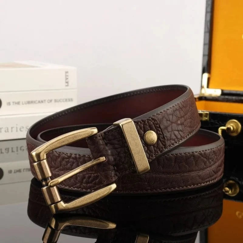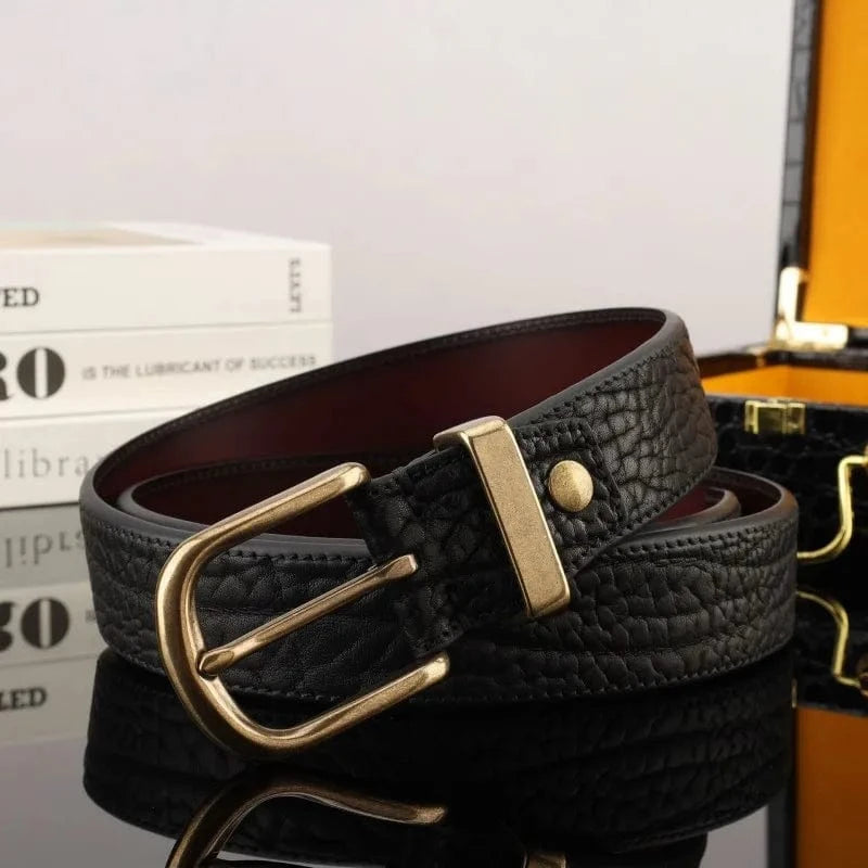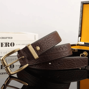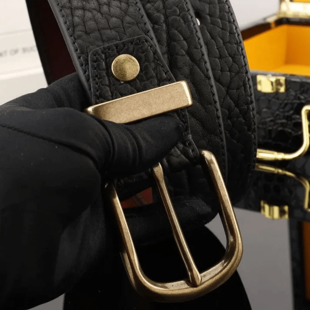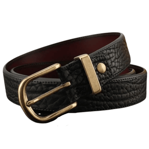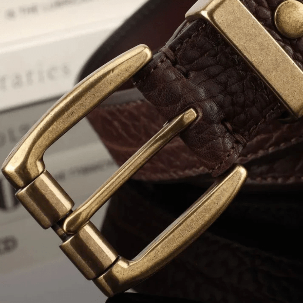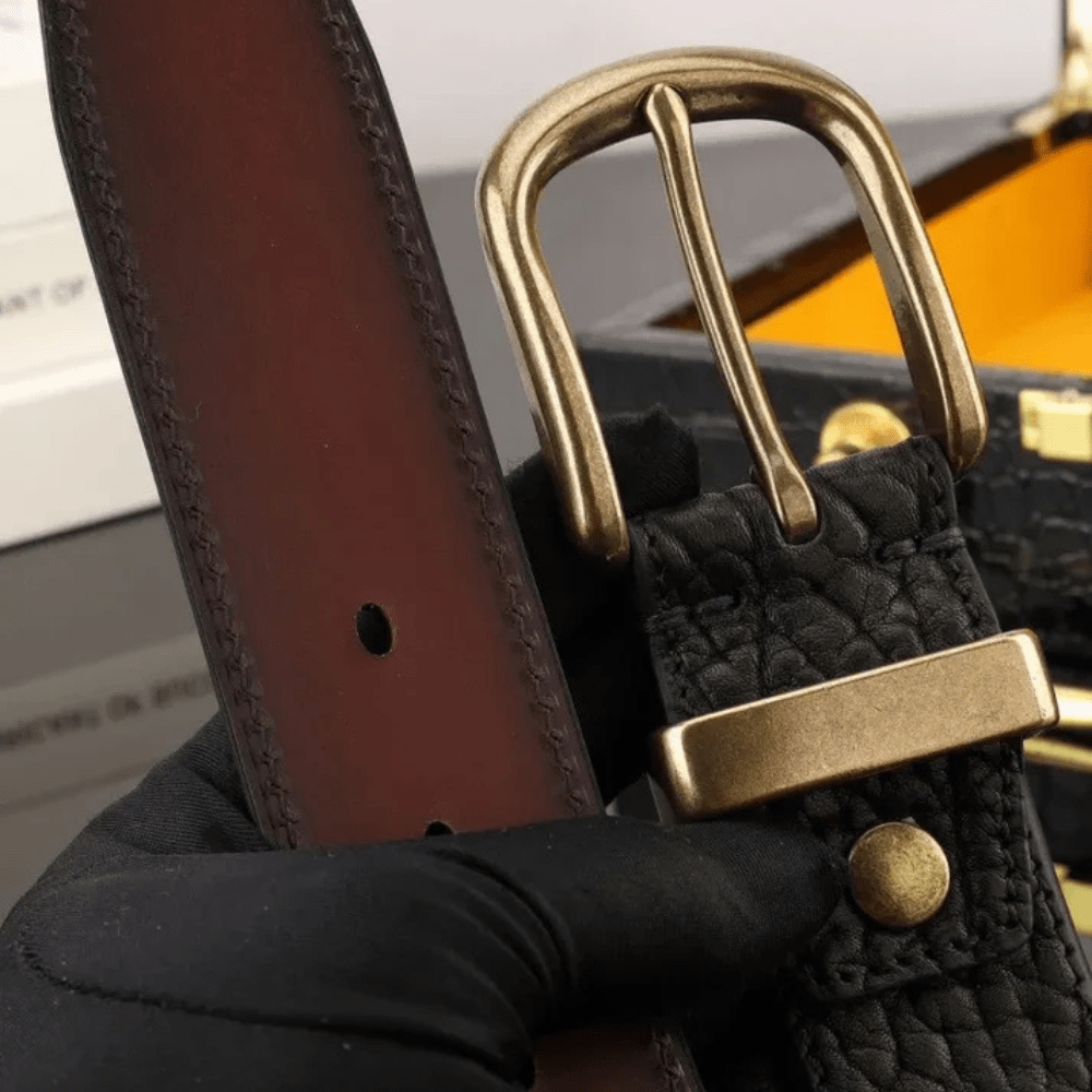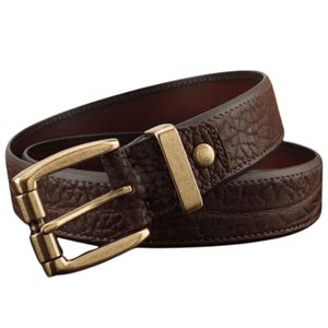 Gör plats i garderoben för ett bälte som kombinerar kraftfullt hantverk med tidlös design. Med en generös bredd på 3,8 cm, förstklassigt kohudsläder och ett elegant spänne i antik mässing, är detta ett westernbälte som höjer varje outfit – oavsett om du bär jeans eller chinos.